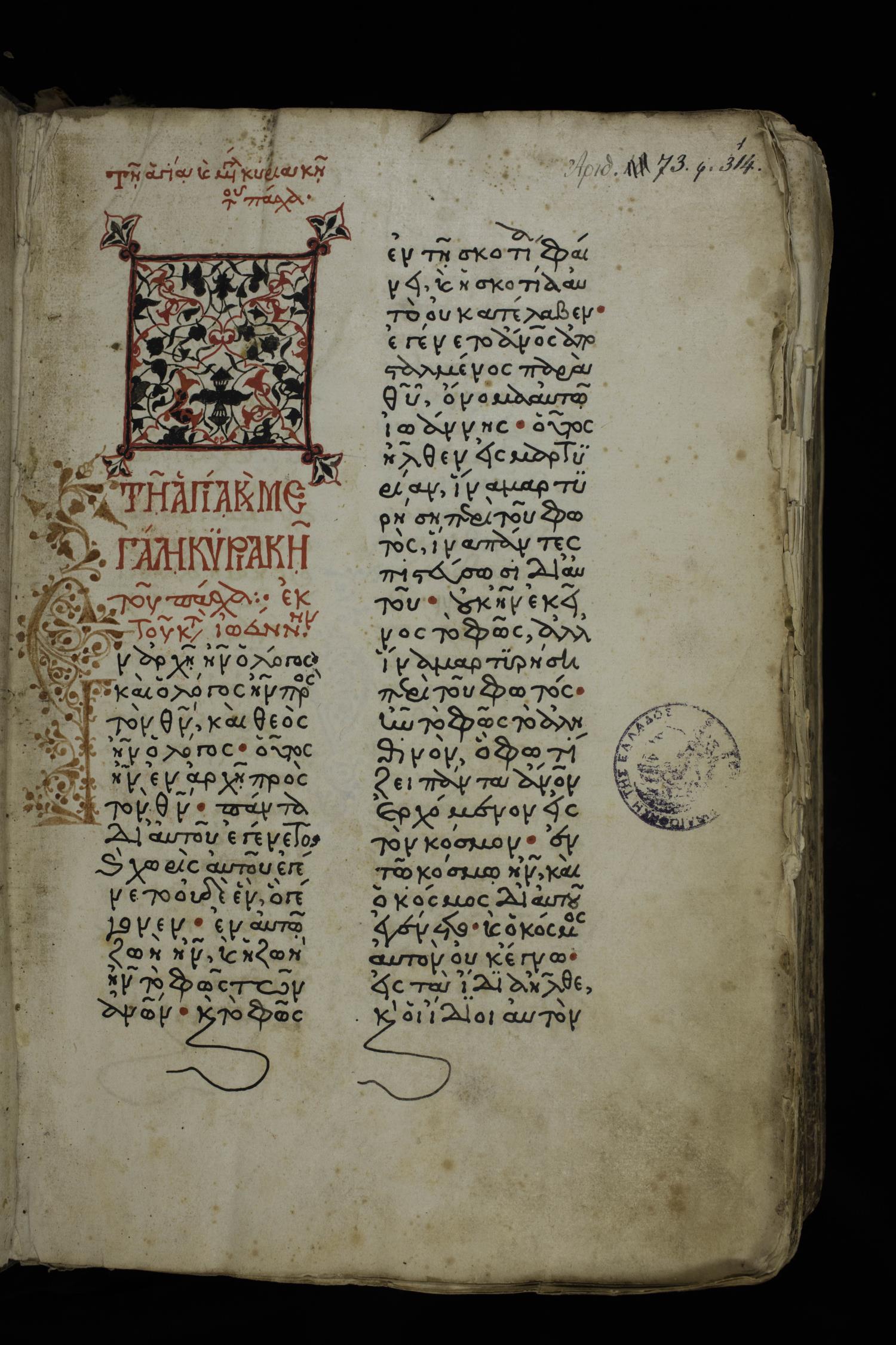 Sixteenth century lectionary of the Gospels on paper; 314 leaves, 2 columns, 27 lines per column. Images were taken at the National Library of Greece in Athens.