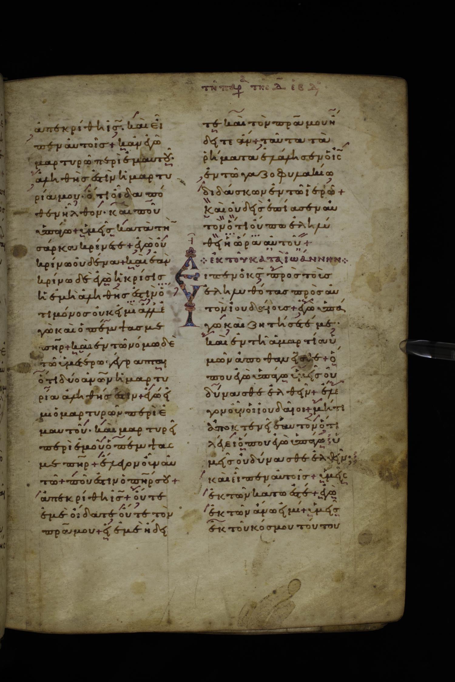 Eleventh century lectionary of the Gospels on parchment; 252 leaves, 2 columns, 25 lines per column.