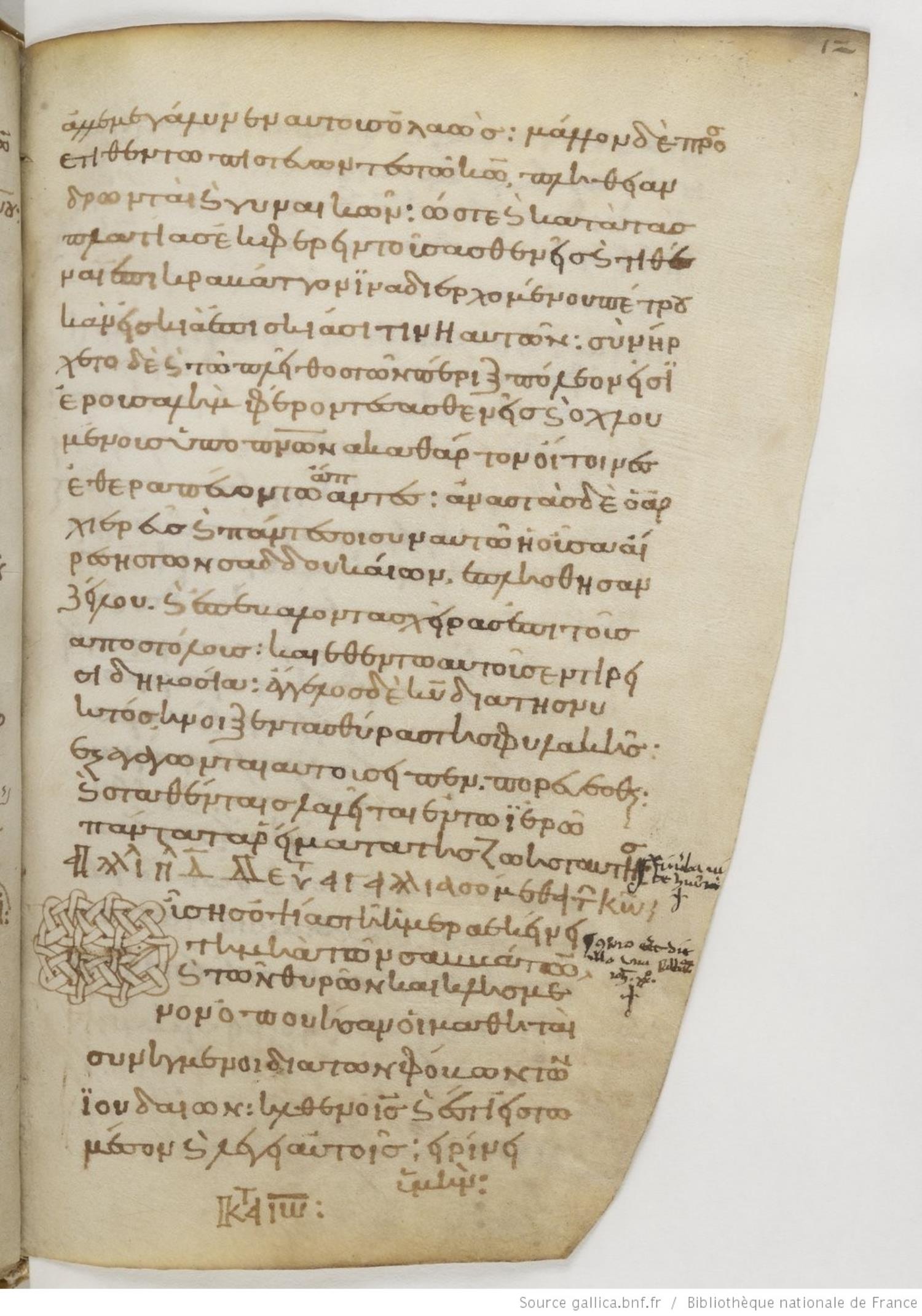Eleventh century dated to (1021) minuscule lectionary on parchment; 195 leaves, single column, 28 lines per column. Contents: lectionary contains the Apostolos, Gospels, and weekday readings from Easter to Pentecost, and Saturday and Sunday readings for other weeks. For recent images, please visit the Bibliothèque Nationale