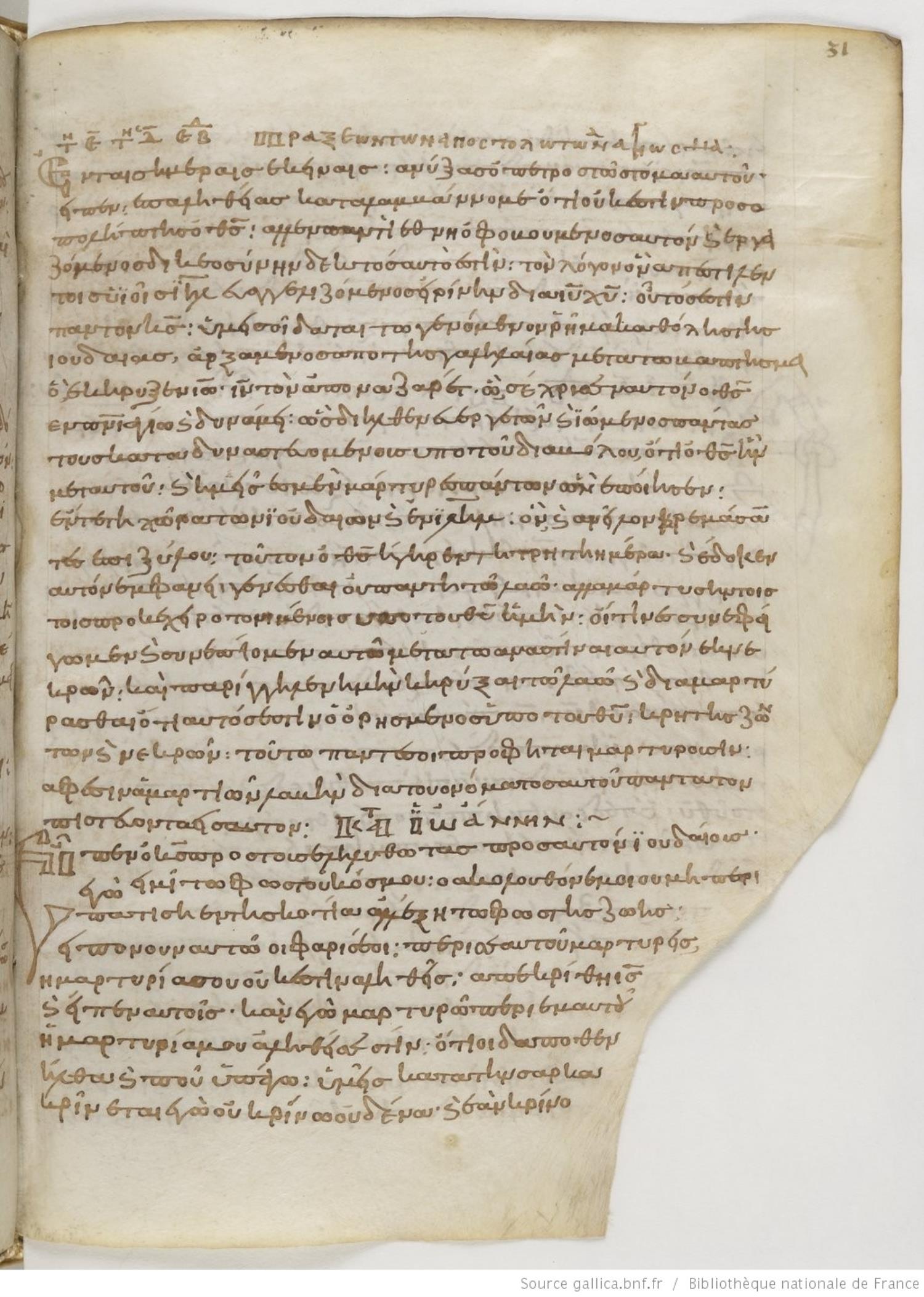 Eleventh century dated to (1021) minuscule lectionary on parchment; 195 leaves, single column, 28 lines per column. Contents: lectionary contains the Apostolos, Gospels, and weekday readings from Easter to Pentecost, and Saturday and Sunday readings for other weeks. For recent images, please visit the Bibliothèque Nationale