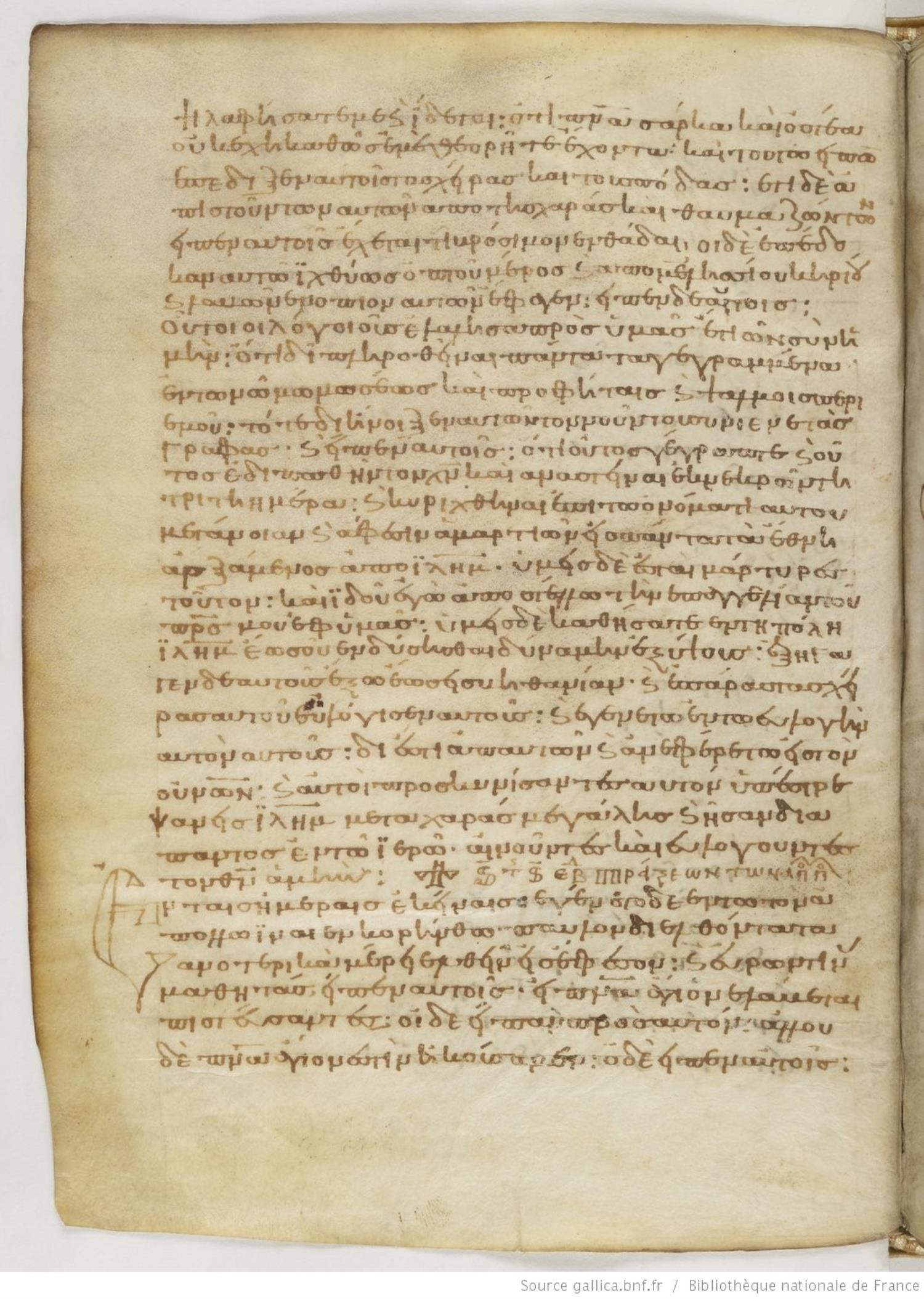 Eleventh century dated to (1021) minuscule lectionary on parchment; 195 leaves, single column, 28 lines per column. Contents: lectionary contains the Apostolos, Gospels, and weekday readings from Easter to Pentecost, and Saturday and Sunday readings for other weeks. For recent images, please visit the Bibliothèque Nationale