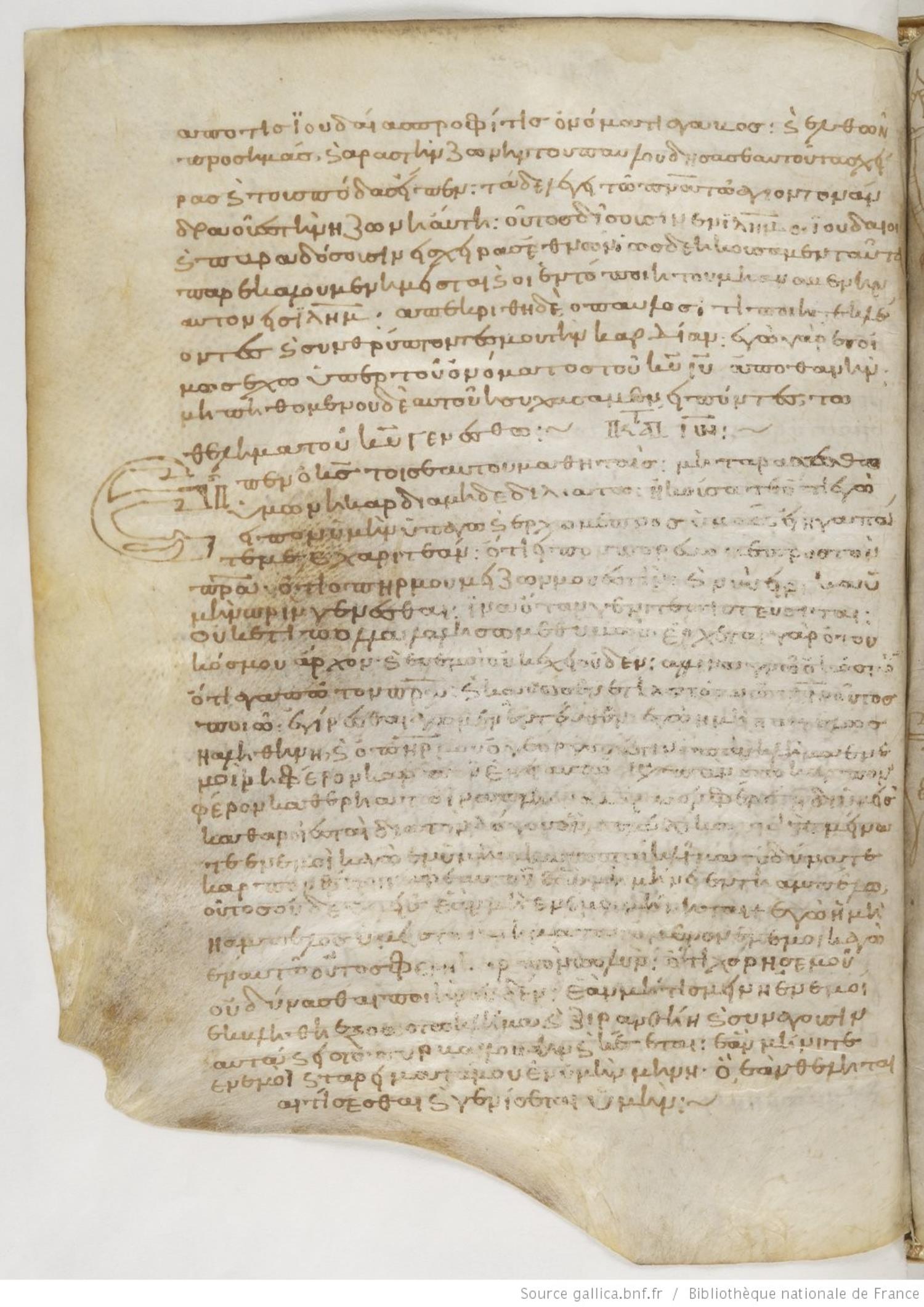 Eleventh century dated to (1021) minuscule lectionary on parchment; 195 leaves, single column, 28 lines per column. Contents: lectionary contains the Apostolos, Gospels, and weekday readings from Easter to Pentecost, and Saturday and Sunday readings for other weeks. For recent images, please visit the Bibliothèque Nationale