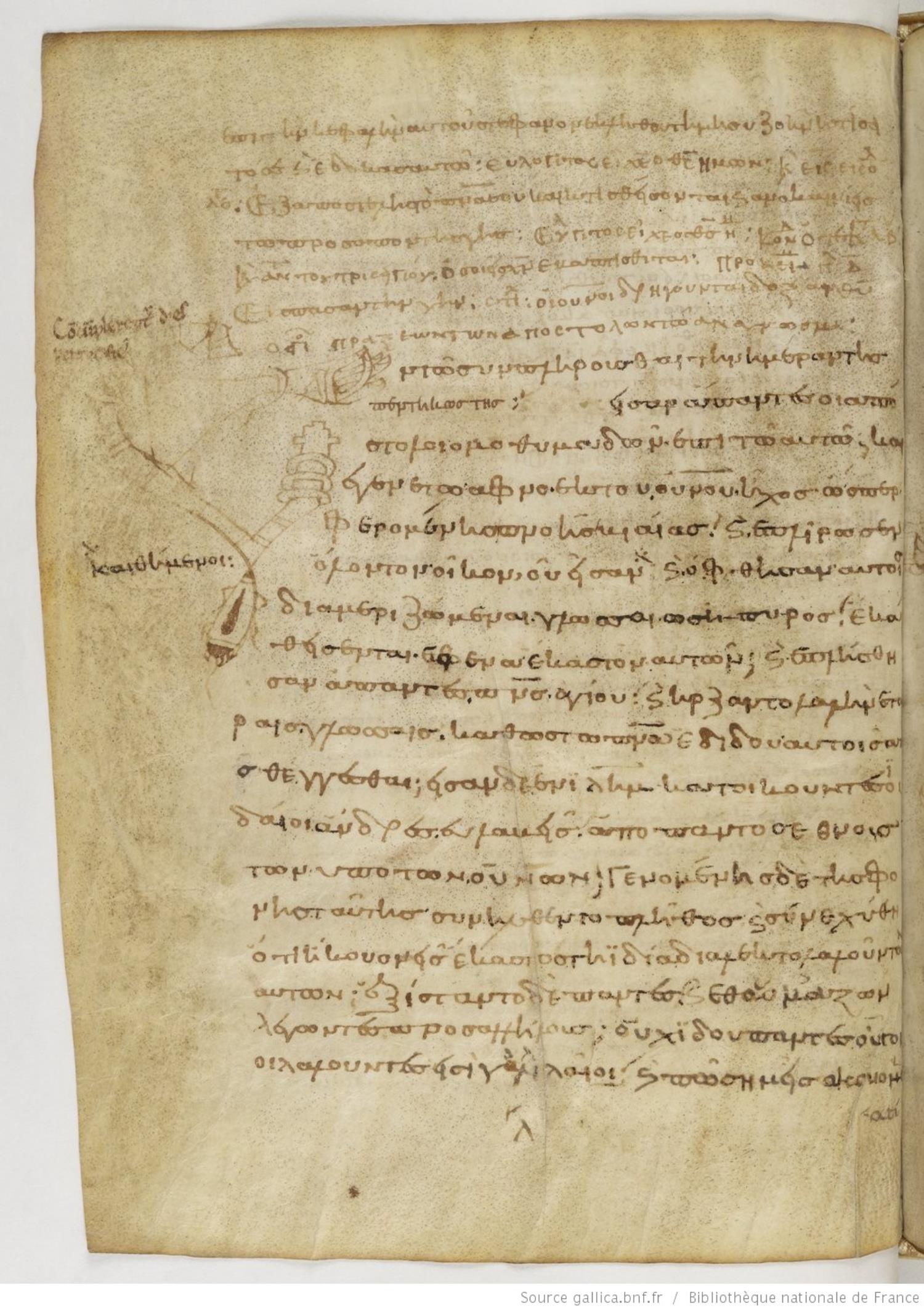 Eleventh century dated to (1021) minuscule lectionary on parchment; 195 leaves, single column, 28 lines per column. Contents: lectionary contains the Apostolos, Gospels, and weekday readings from Easter to Pentecost, and Saturday and Sunday readings for other weeks. For recent images, please visit the Bibliothèque Nationale