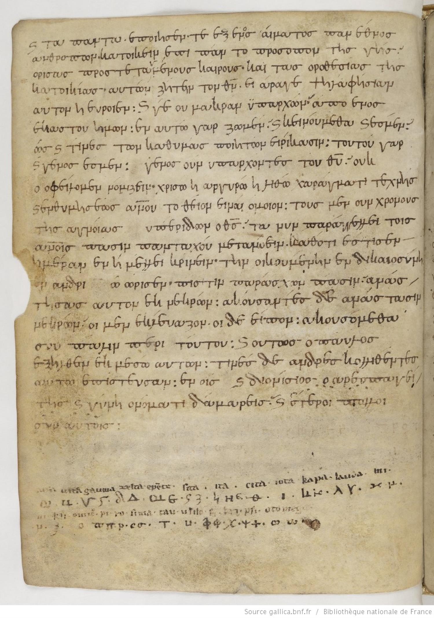 Eleventh century dated to (1021) minuscule lectionary on parchment; 195 leaves, single column, 28 lines per column. Contents: lectionary contains the Apostolos, Gospels, and weekday readings from Easter to Pentecost, and Saturday and Sunday readings for other weeks. For recent images, please visit the Bibliothèque Nationale