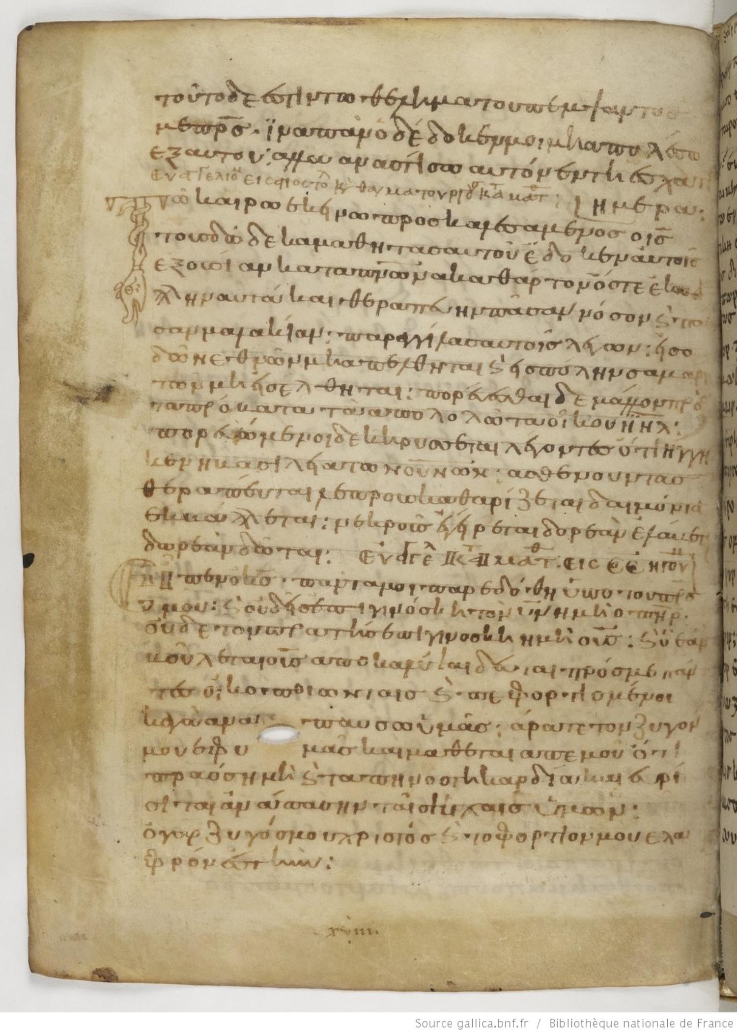 Eleventh century dated to (1021) minuscule lectionary on parchment; 195 leaves, single column, 28 lines per column. Contents: lectionary contains the Apostolos, Gospels, and weekday readings from Easter to Pentecost, and Saturday and Sunday readings for other weeks. For recent images, please visit the Bibliothèque Nationale