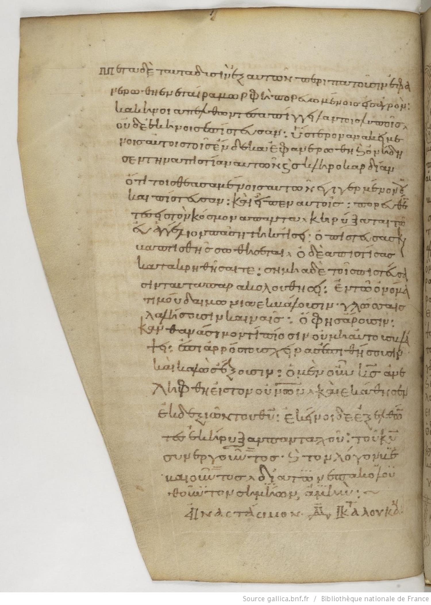 Eleventh century dated to (1021) minuscule lectionary on parchment; 195 leaves, single column, 28 lines per column. Contents: lectionary contains the Apostolos, Gospels, and weekday readings from Easter to Pentecost, and Saturday and Sunday readings for other weeks. For recent images, please visit the Bibliothèque Nationale