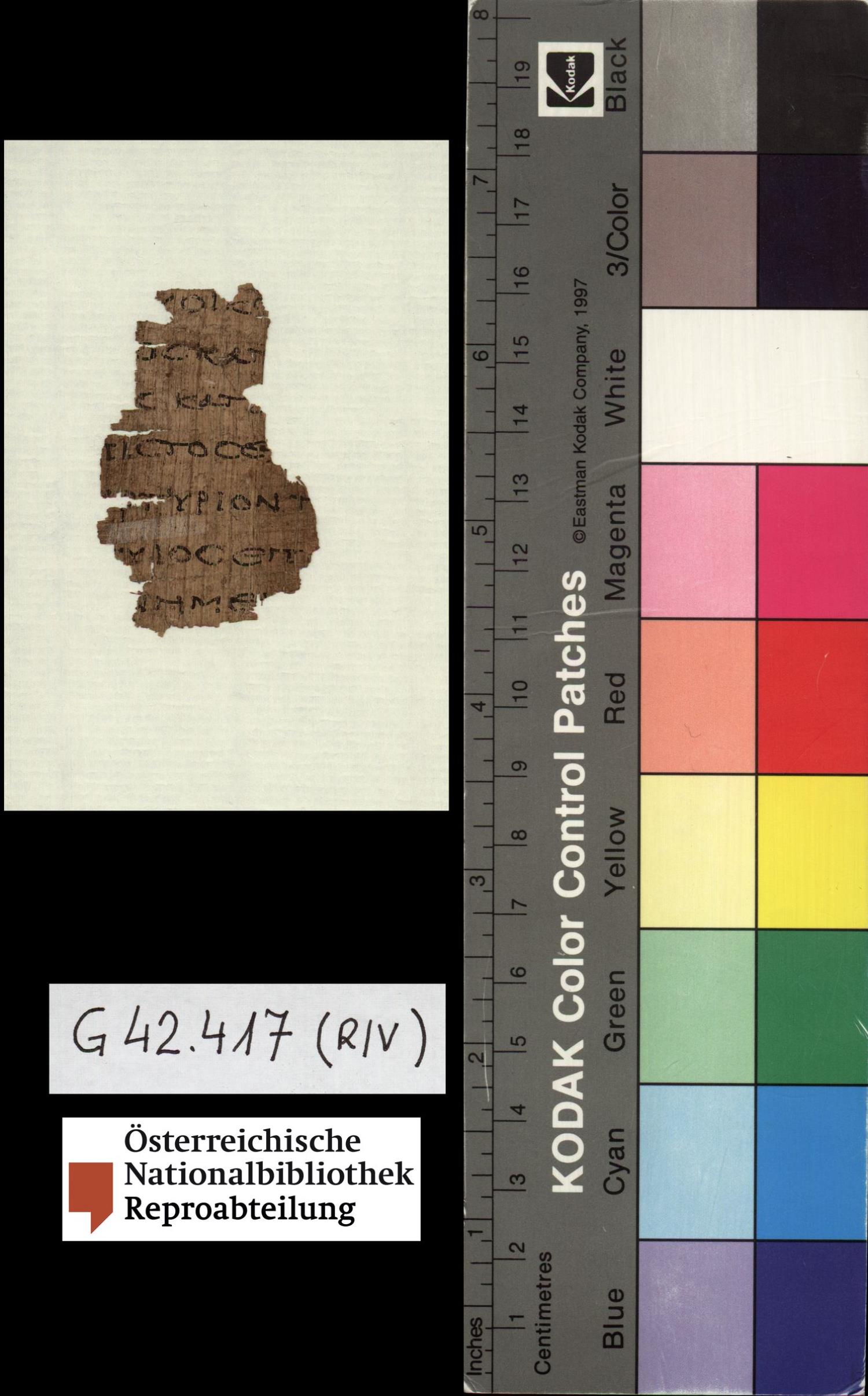 Sixth or seventh century manuscript of Hebrews on papyrus; 1 fragment, 1 column, 7 lines per column. These images are made available online by the institution. For recent images, visit the Österreichische Nationalbibliothek.