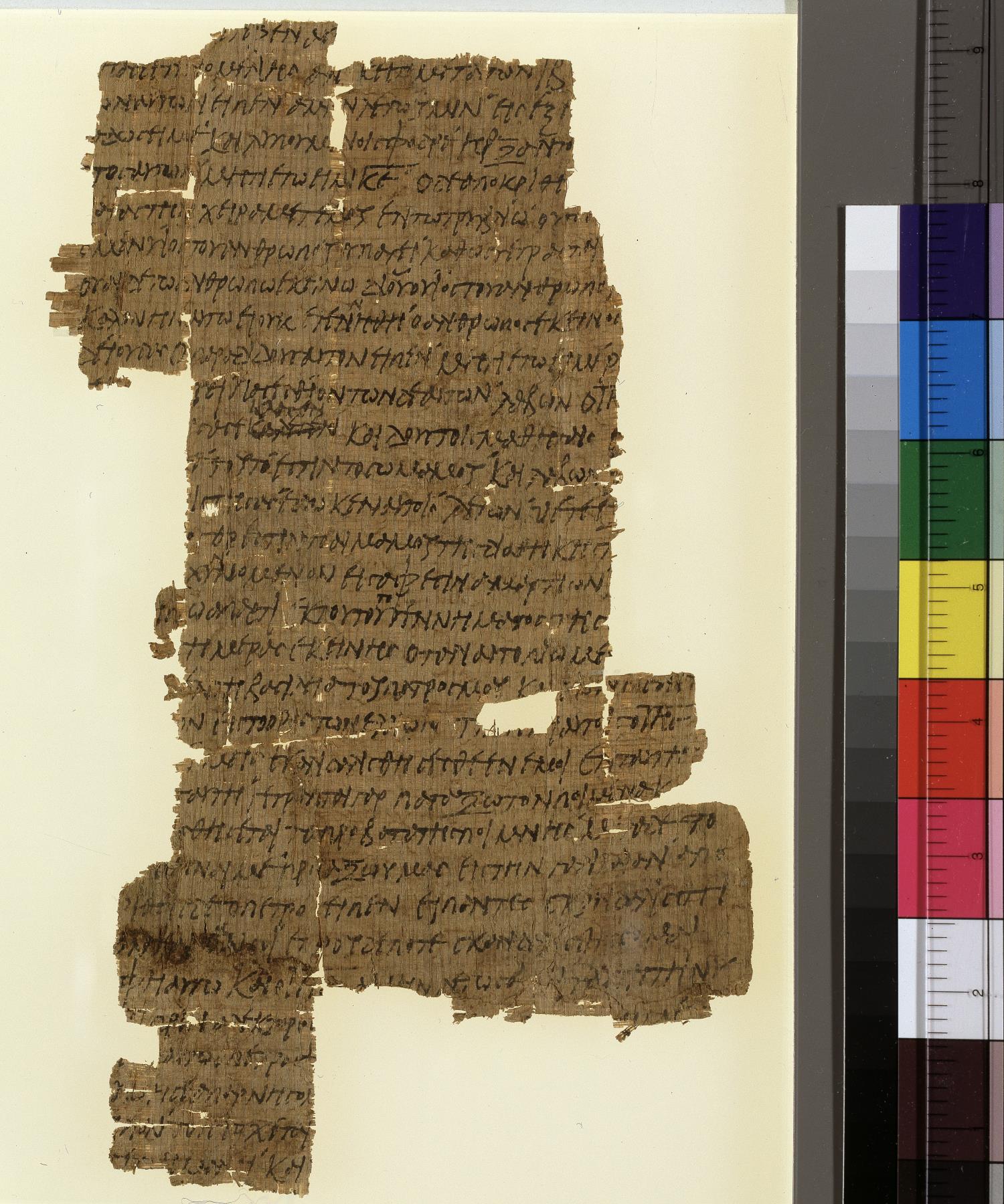 Third or fourth century manuscript of the Gospels on papyrus; 1 fragment, single column, approximately 32–33 lines per column.