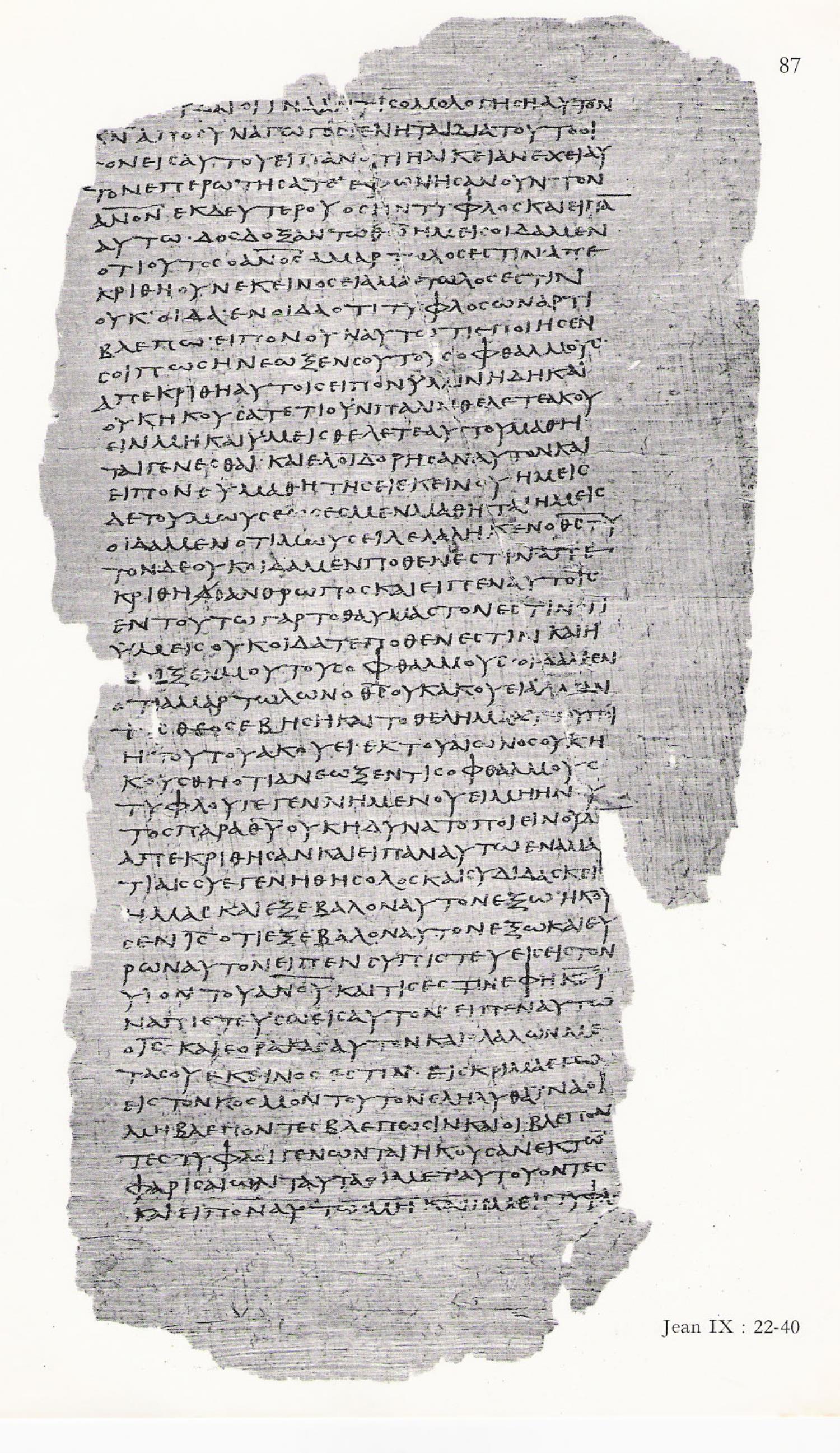 Third century manuscript of the Gospels on papyrus; 50 leaves, single column, approximately 38–45 lines per column. For recent digital images, visit DigiVatLib.