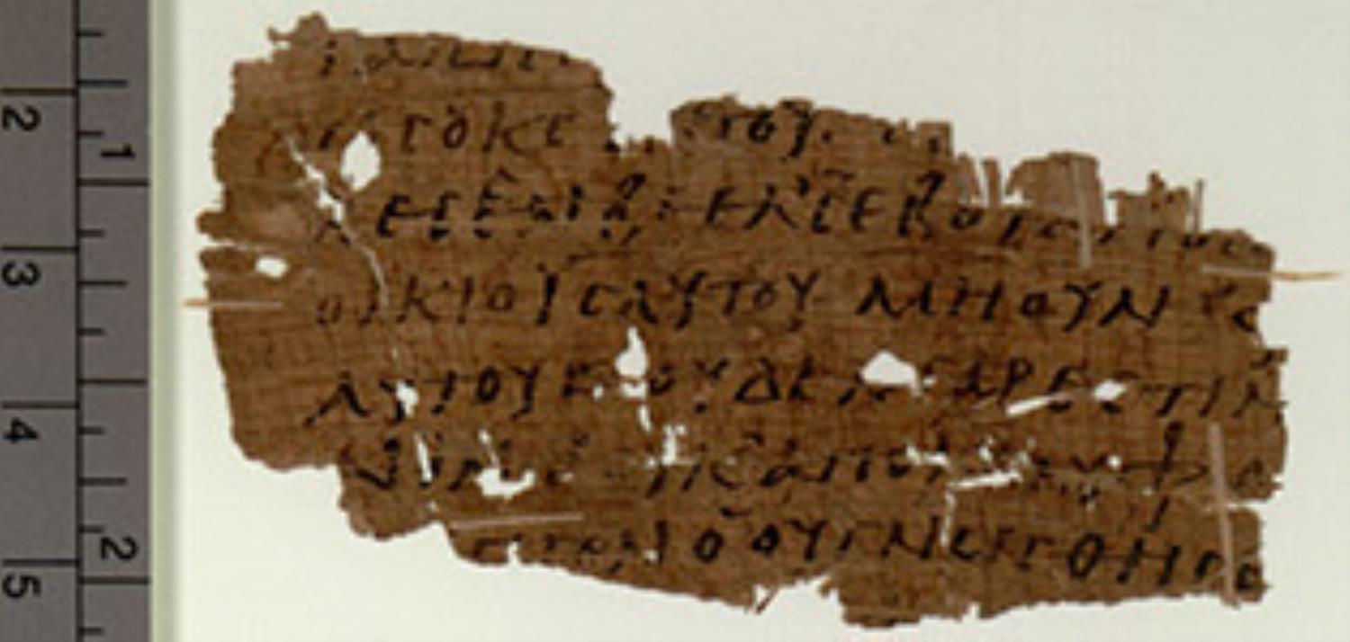 Fourth century manuscript of the Gospels on papyrus; 1 fragment, single column, approximately 40–43 lines per column. Images are made available by the Oxford Imaging Papyri Project. For recent digital images, visit Oxyrhynchus Online.