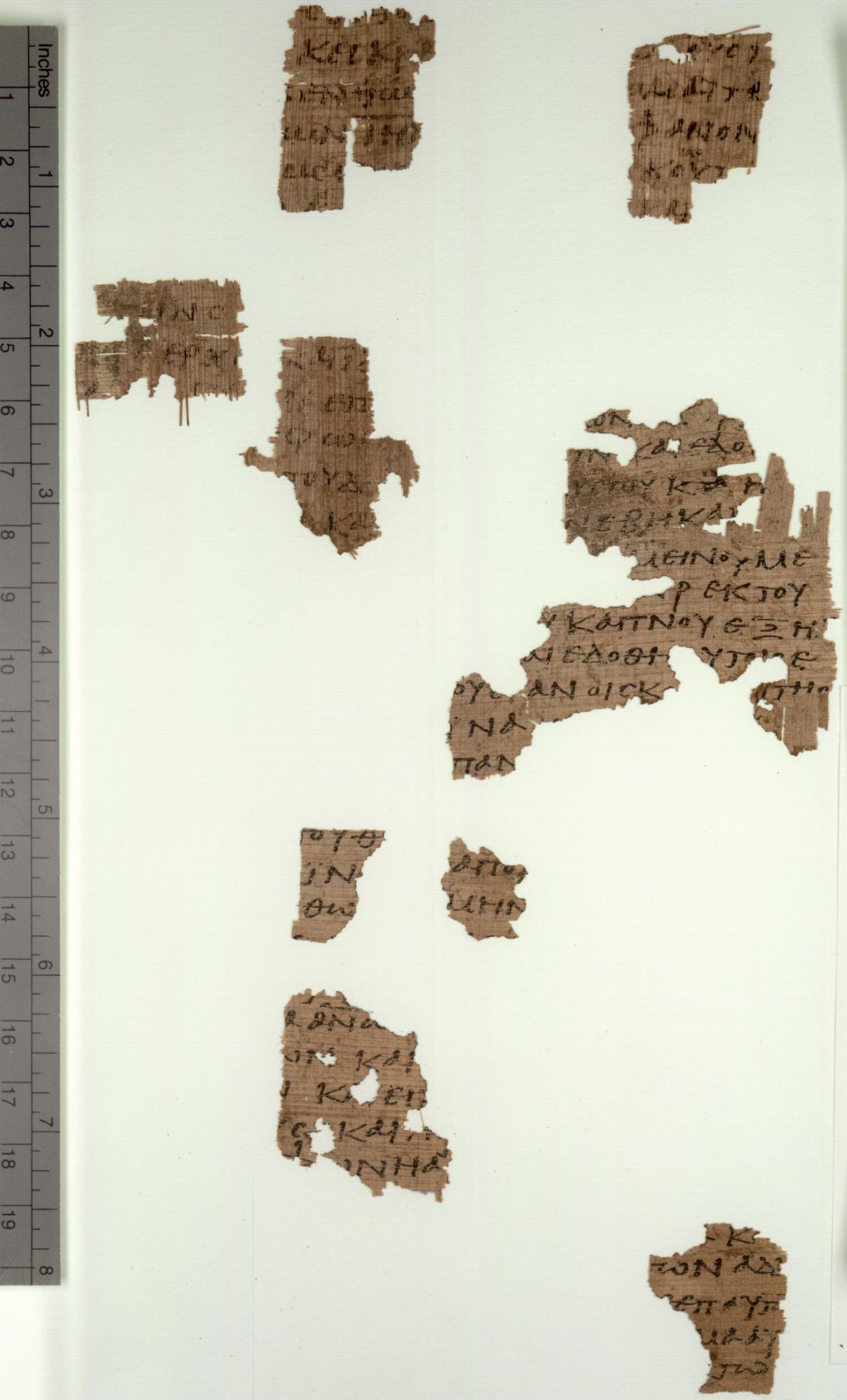 Third or fourth century manuscript of Revelation on papyrus; 26 fragments, single column, approximately 33–36 lines per column. Images are made available by Oxford Imaging Papyri Project. For recent digital images visit Oxyrhynchus Online.