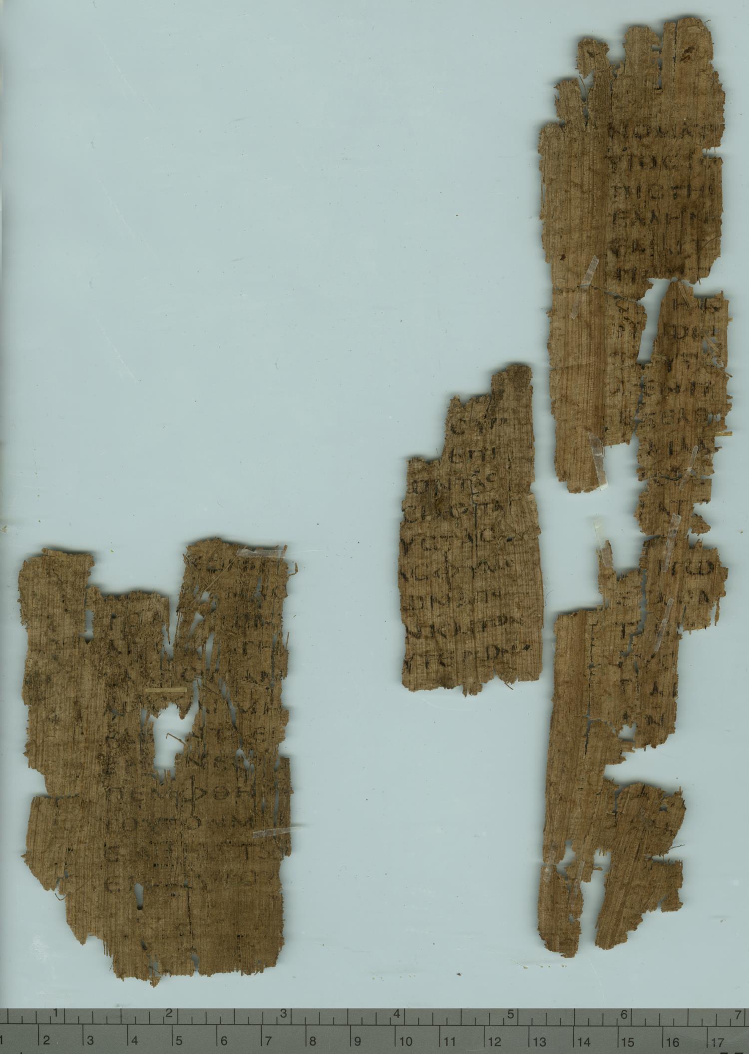 Fifth century manuscript of Acts on papyrus; 8 fragments, single column, 22–26 lines per column. Images are made available by the Oxford Imaging Papyri Project. For recent digital images visit Oxyrhynchus Online.