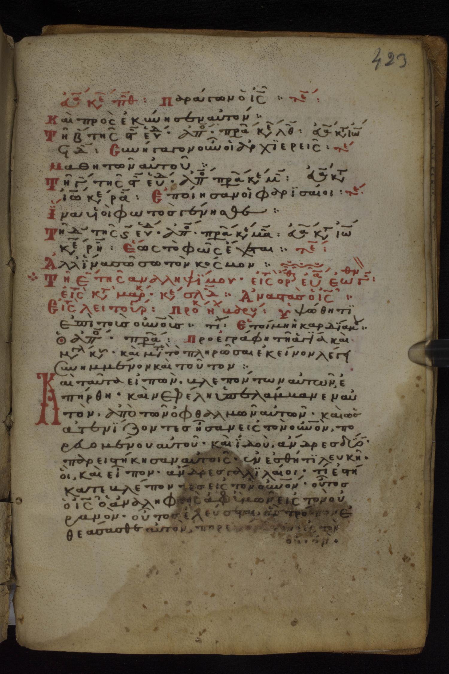 Twelfth century lectionary of the Apostolos and Paul on parchment; 27 leaves, 1 column, 29-31 lines per column. Images were taken at the National Library of Greece in Athens.
