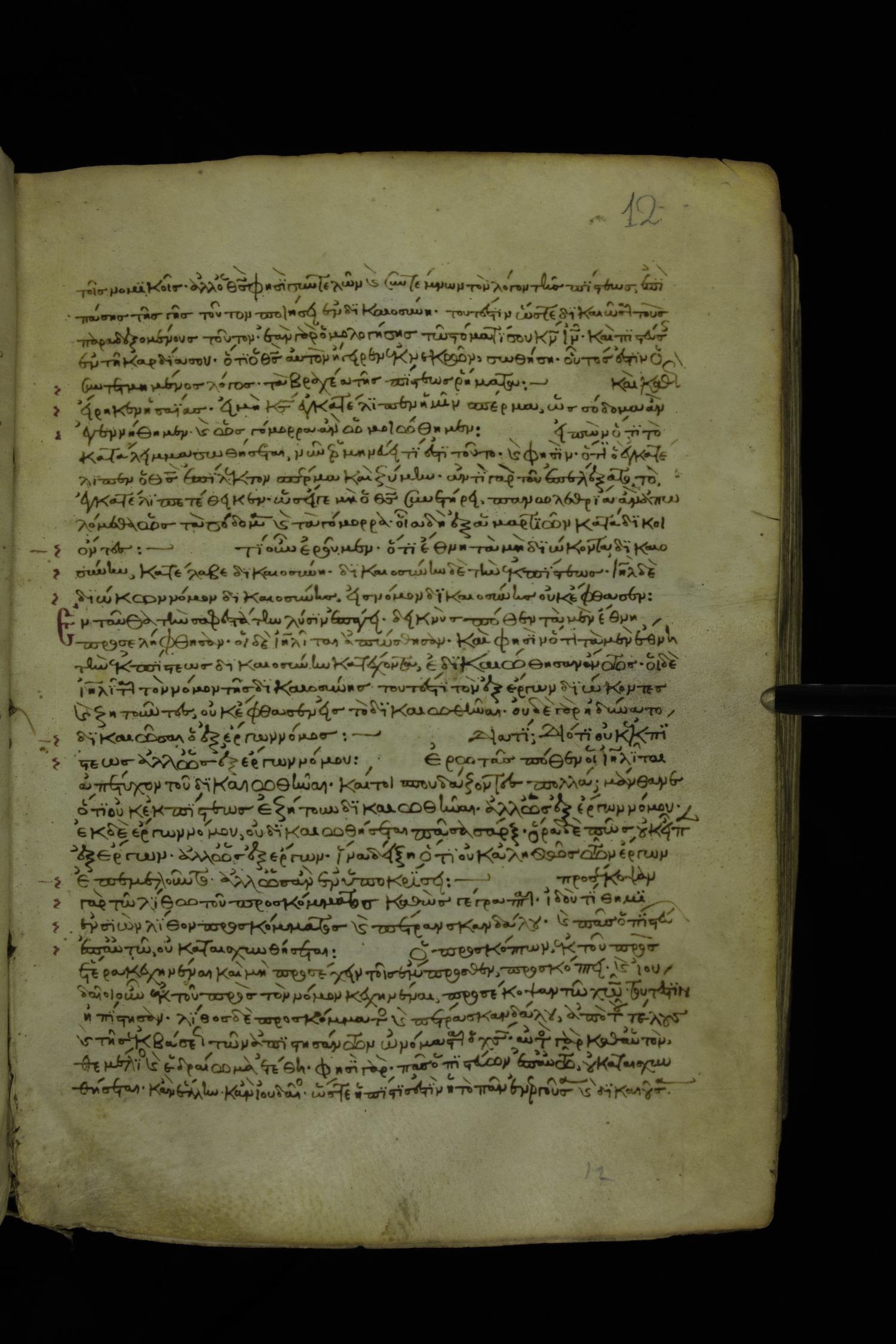 Thirteenth century minuscule of Paul with commentary on parchment; 367 leaves, 1 column, 34-41 lines per column. Images were taken at the National Library of Greece in Athens.