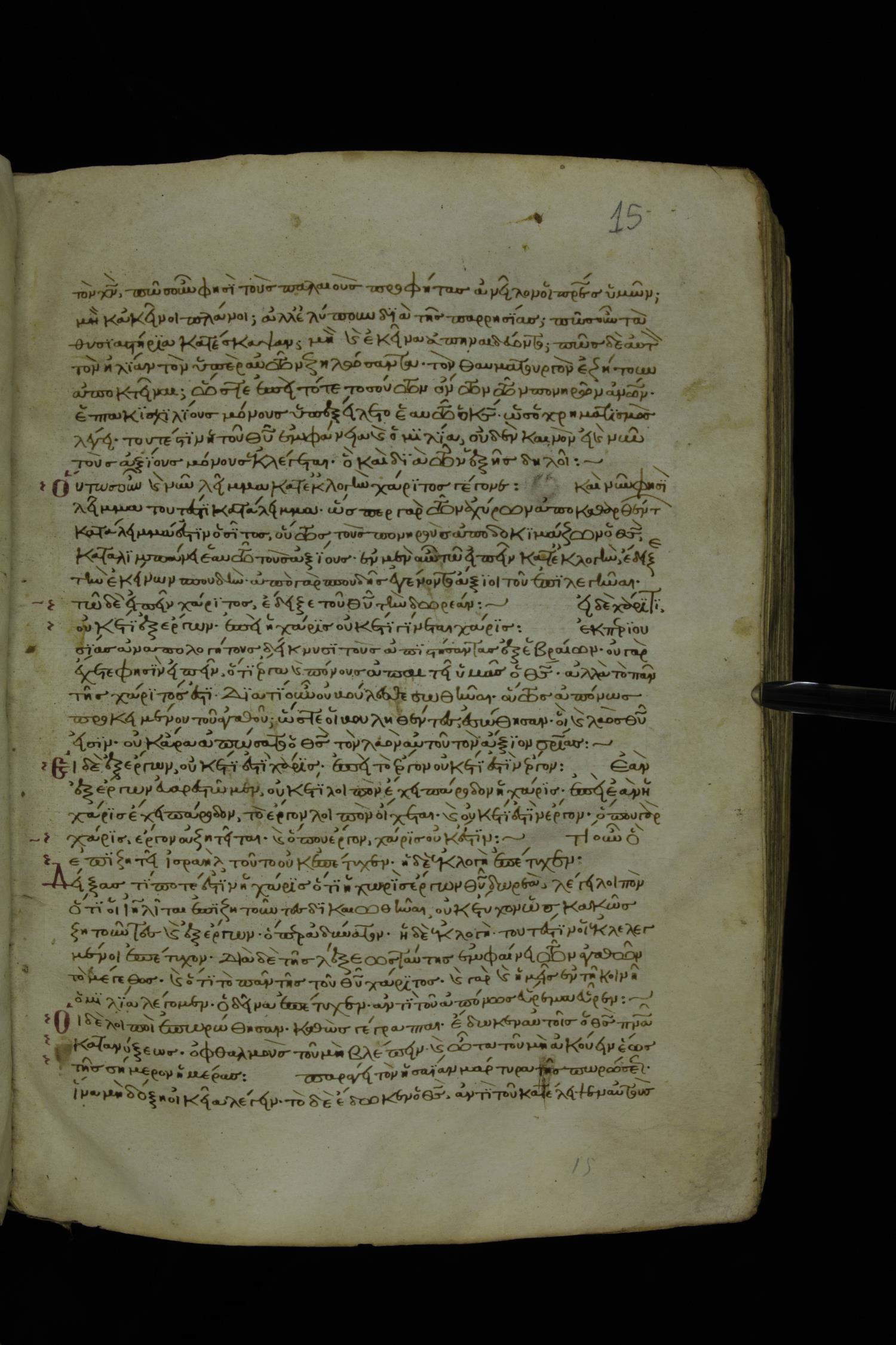 Thirteenth century minuscule of Paul with commentary on parchment; 367 leaves, 1 column, 34-41 lines per column. Images were taken at the National Library of Greece in Athens.