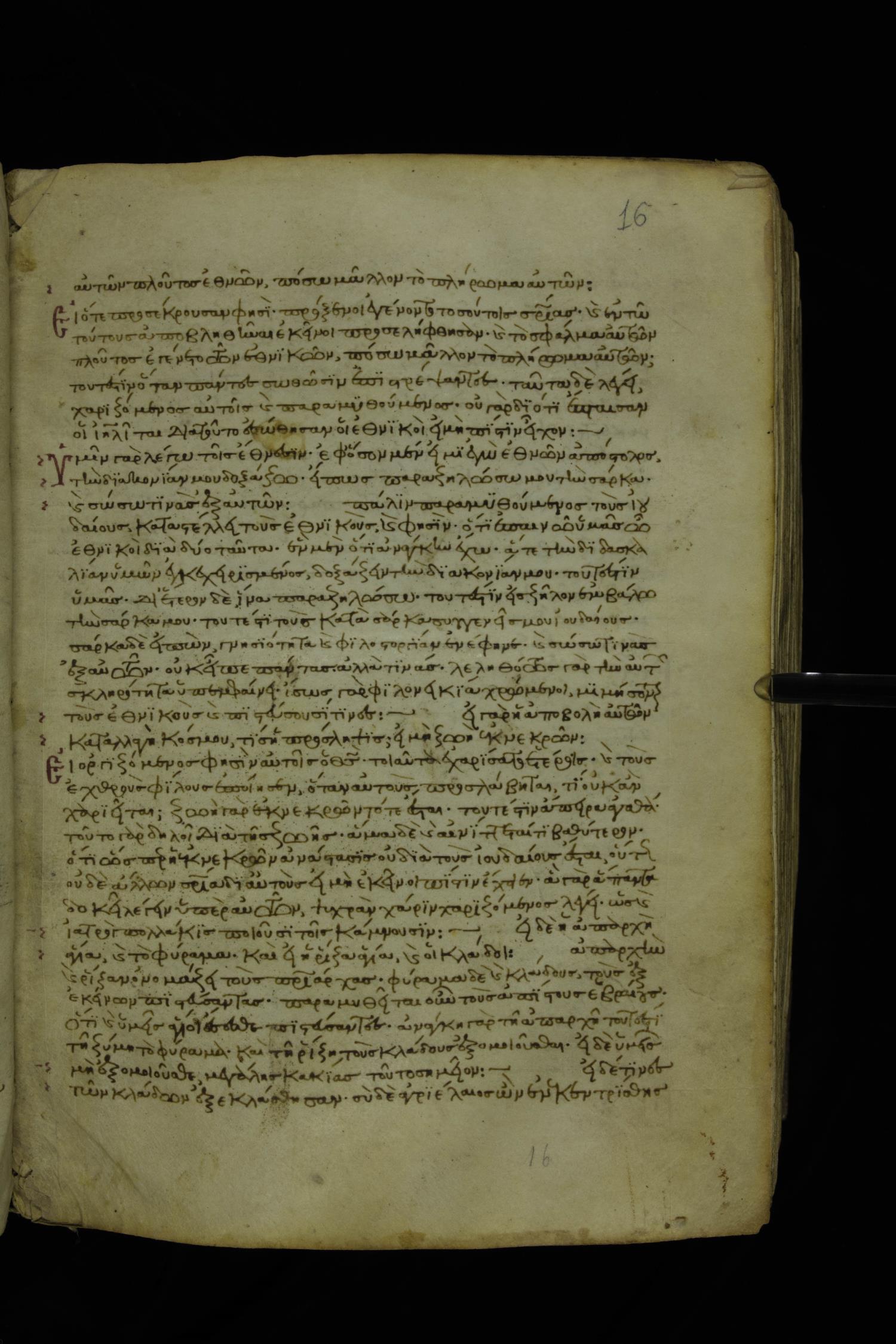 Thirteenth century minuscule of Paul with commentary on parchment; 367 leaves, 1 column, 34-41 lines per column. Images were taken at the National Library of Greece in Athens.