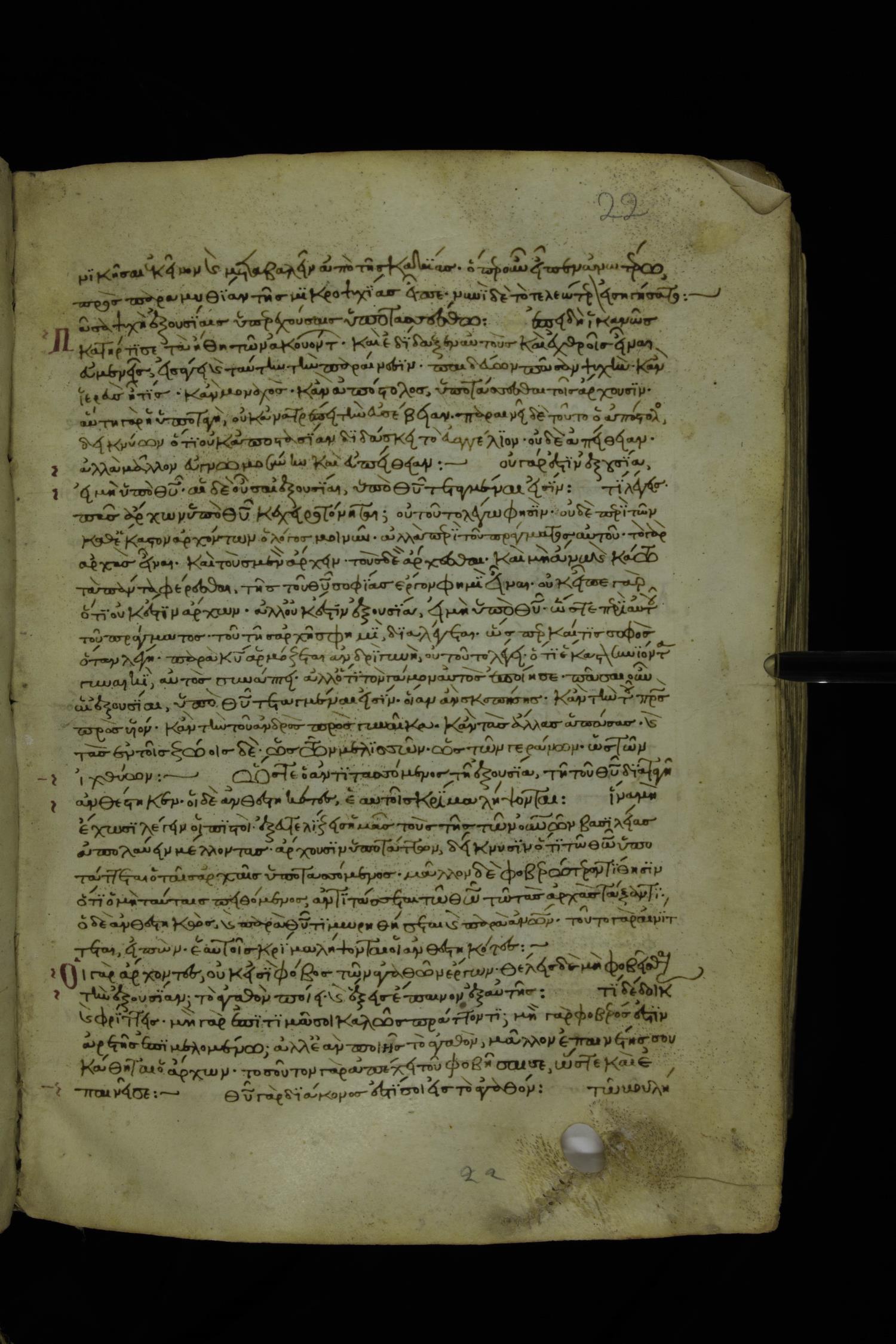 Thirteenth century minuscule of Paul with commentary on parchment; 367 leaves, 1 column, 34-41 lines per column. Images were taken at the National Library of Greece in Athens.