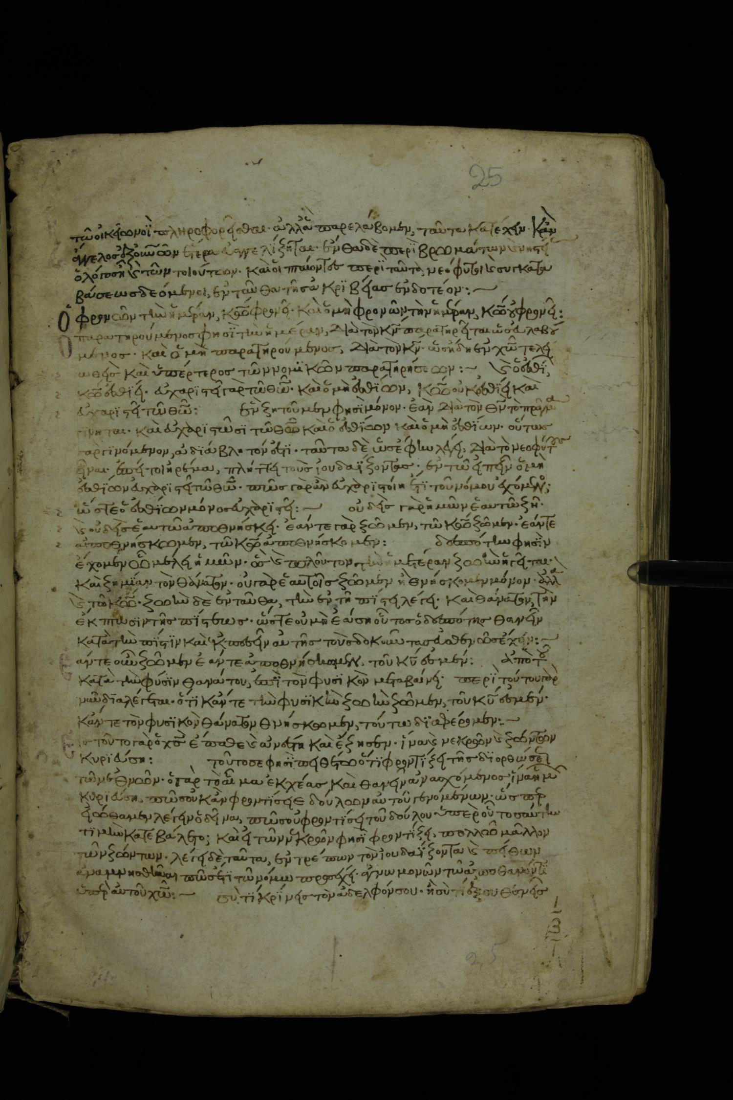Thirteenth century minuscule of Paul with commentary on parchment; 367 leaves, 1 column, 34-41 lines per column. Images were taken at the National Library of Greece in Athens.