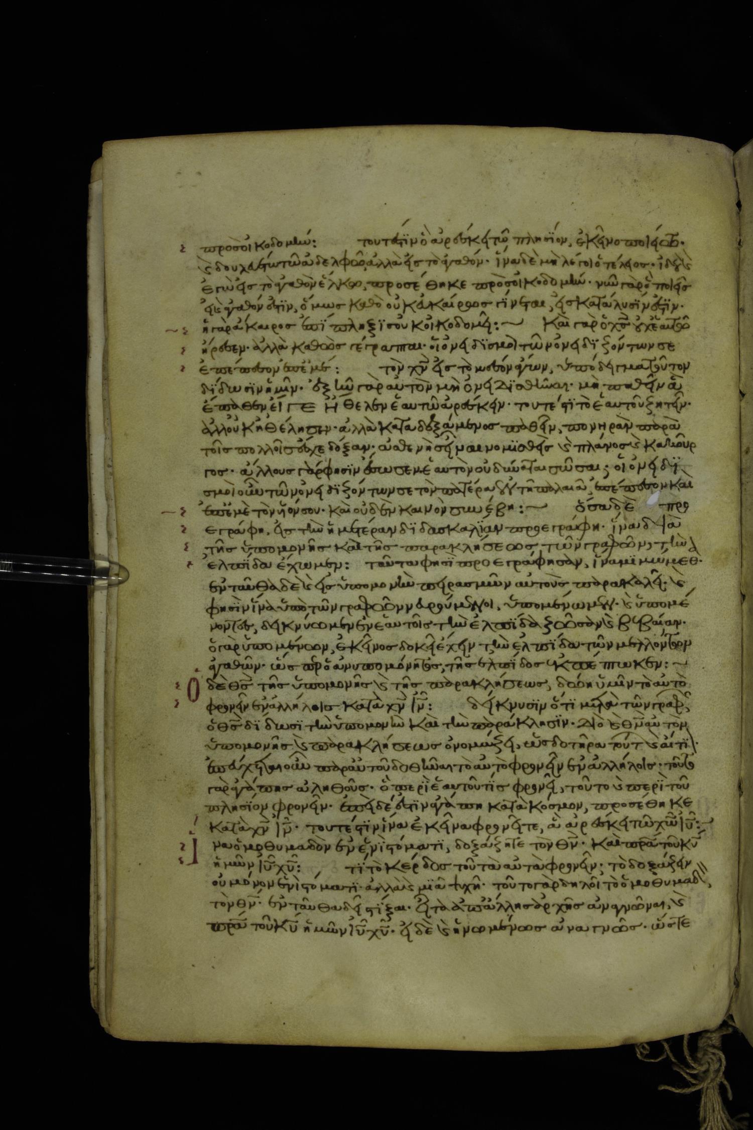 Thirteenth century minuscule of Paul with commentary on parchment; 367 leaves, 1 column, 34-41 lines per column. Images were taken at the National Library of Greece in Athens.