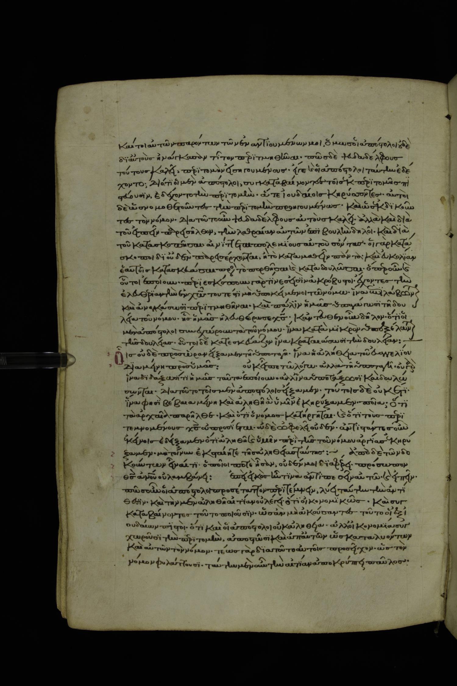 Thirteenth century minuscule of Paul with commentary on parchment; 367 leaves, 1 column, 34-41 lines per column. Images were taken at the National Library of Greece in Athens.