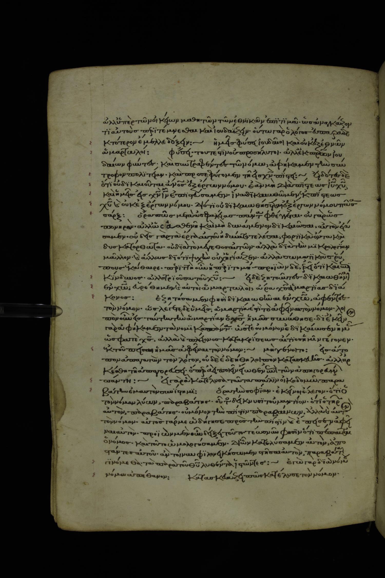 Thirteenth century minuscule of Paul with commentary on parchment; 367 leaves, 1 column, 34-41 lines per column. Images were taken at the National Library of Greece in Athens.