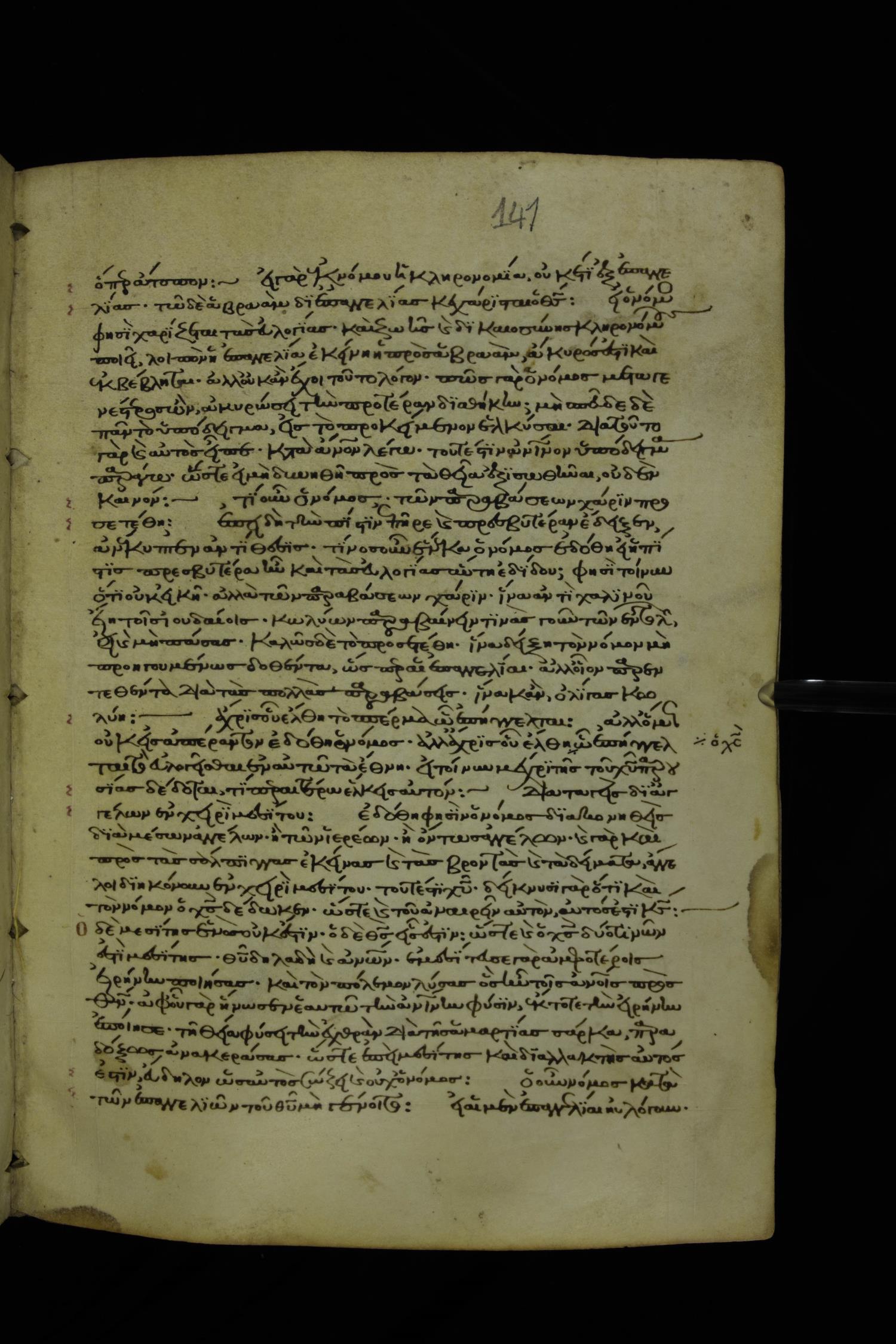 Thirteenth century minuscule of Paul with commentary on parchment; 367 leaves, 1 column, 34-41 lines per column. Images were taken at the National Library of Greece in Athens.