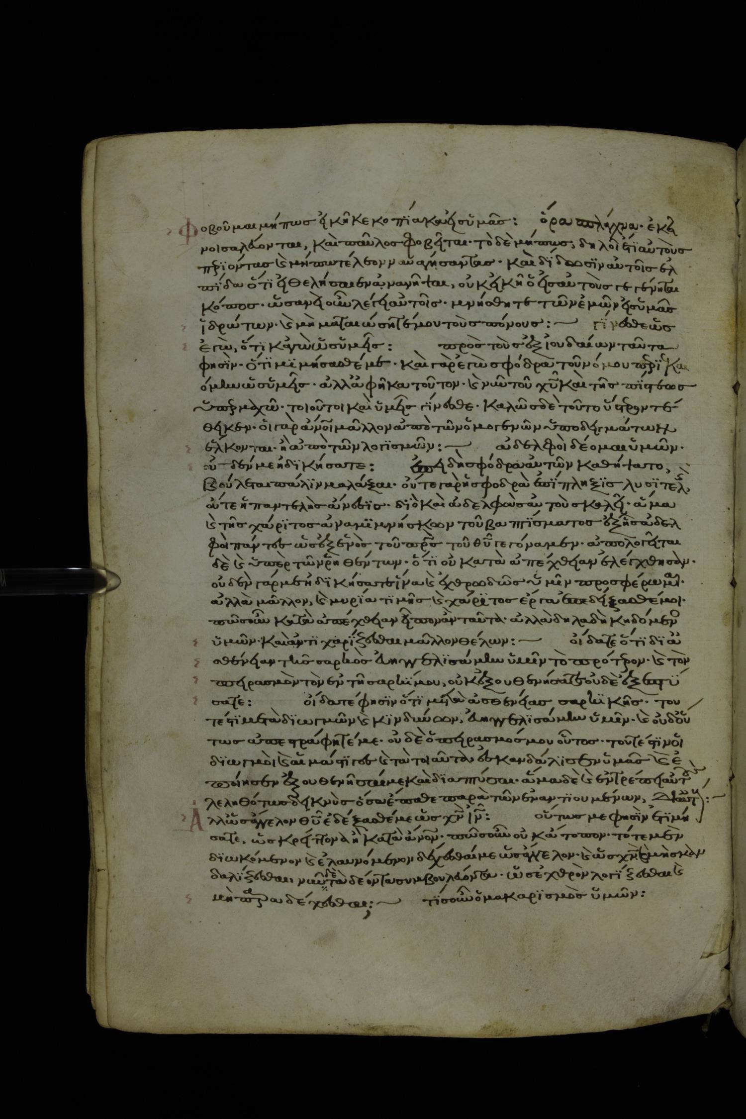 Thirteenth century minuscule of Paul with commentary on parchment; 367 leaves, 1 column, 34-41 lines per column. Images were taken at the National Library of Greece in Athens.
