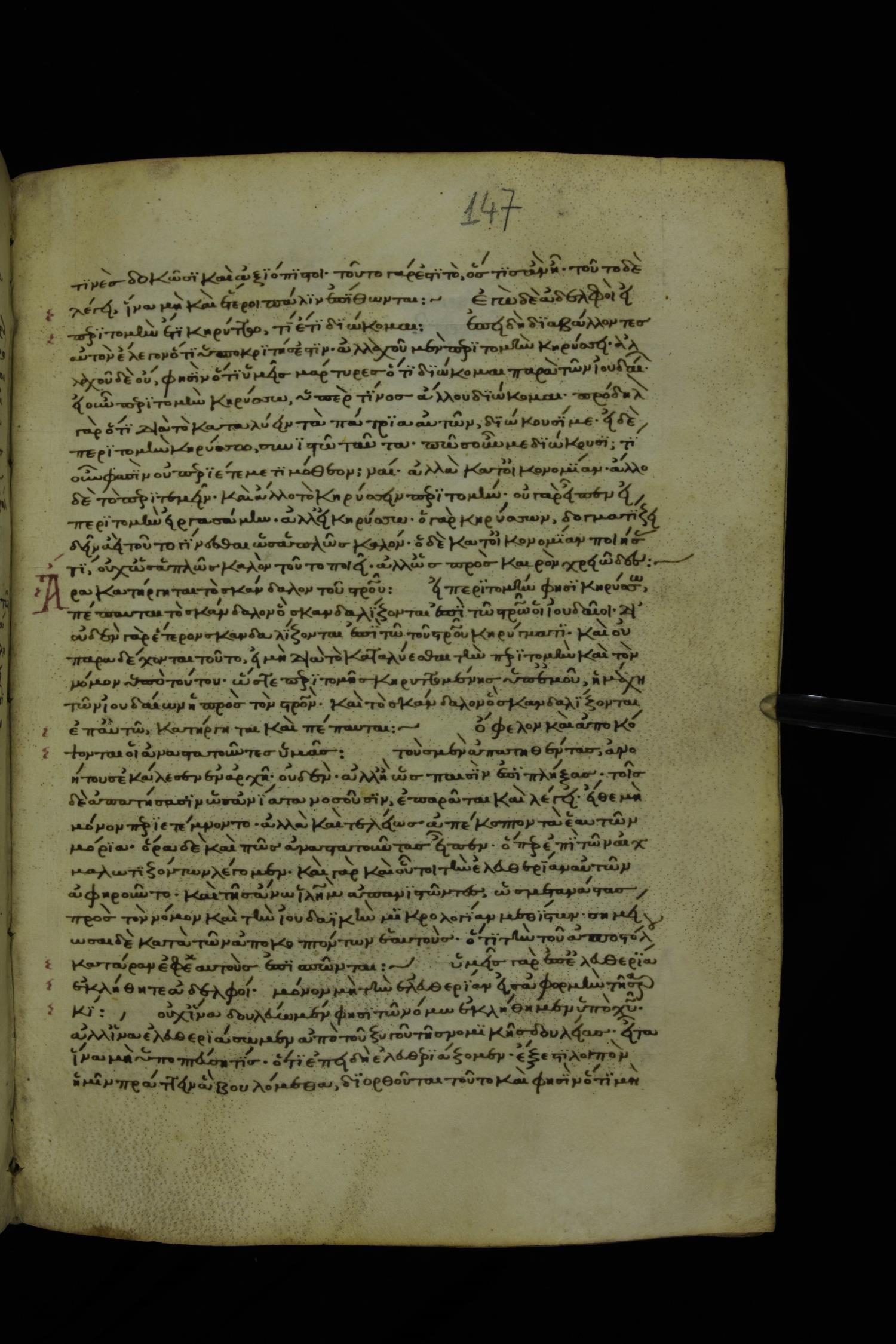 Thirteenth century minuscule of Paul with commentary on parchment; 367 leaves, 1 column, 34-41 lines per column. Images were taken at the National Library of Greece in Athens.