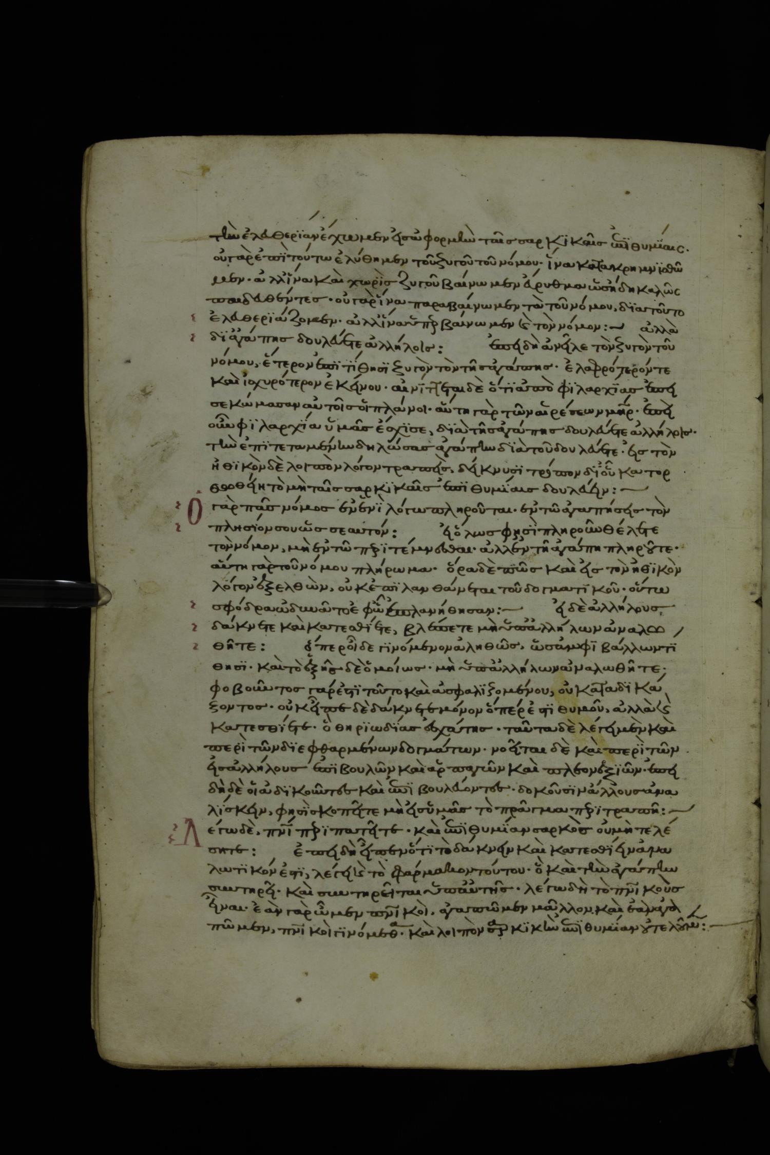 Thirteenth century minuscule of Paul with commentary on parchment; 367 leaves, 1 column, 34-41 lines per column. Images were taken at the National Library of Greece in Athens.