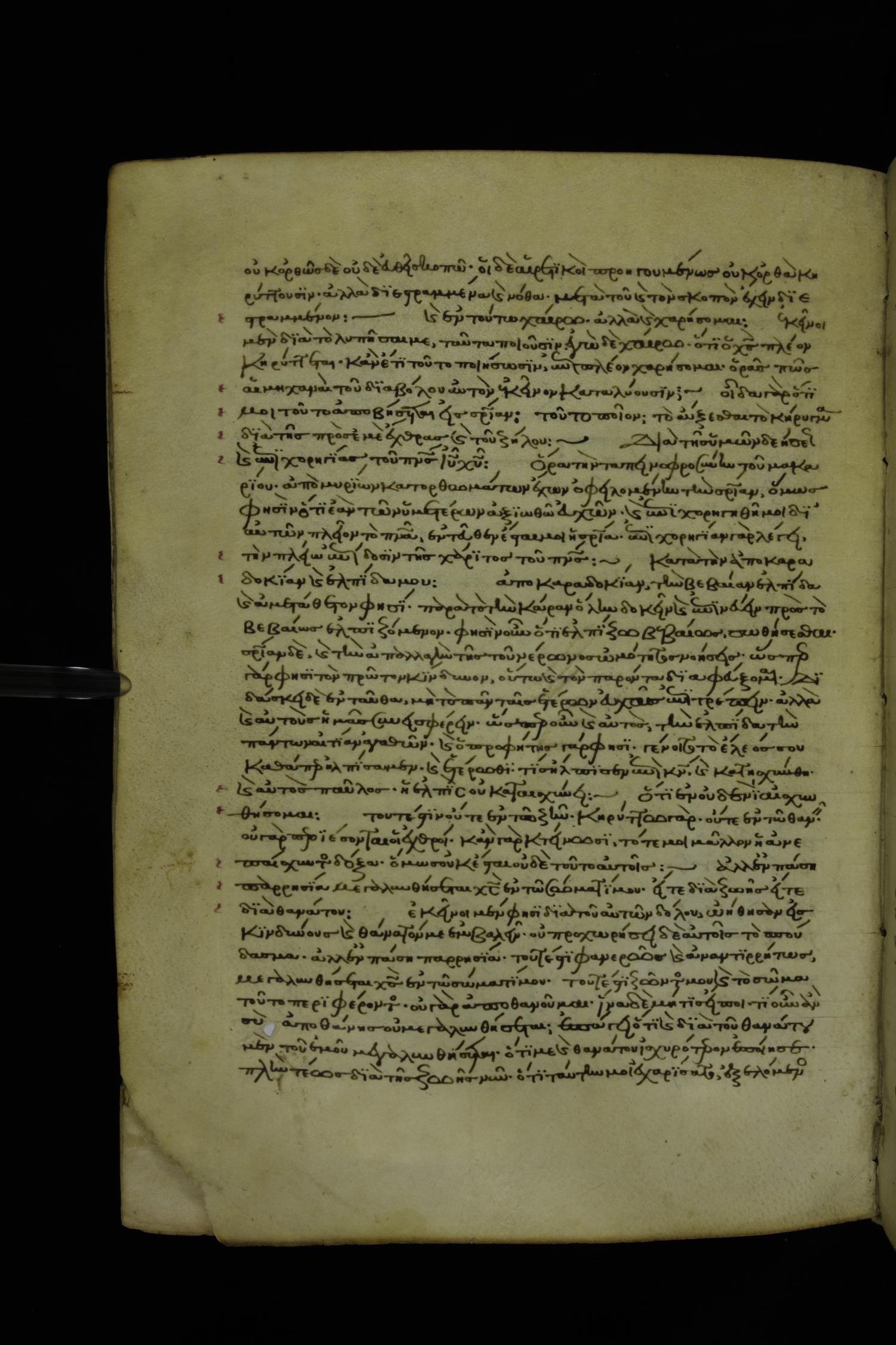 Thirteenth century minuscule of Paul with commentary on parchment; 367 leaves, 1 column, 34-41 lines per column. Images were taken at the National Library of Greece in Athens.