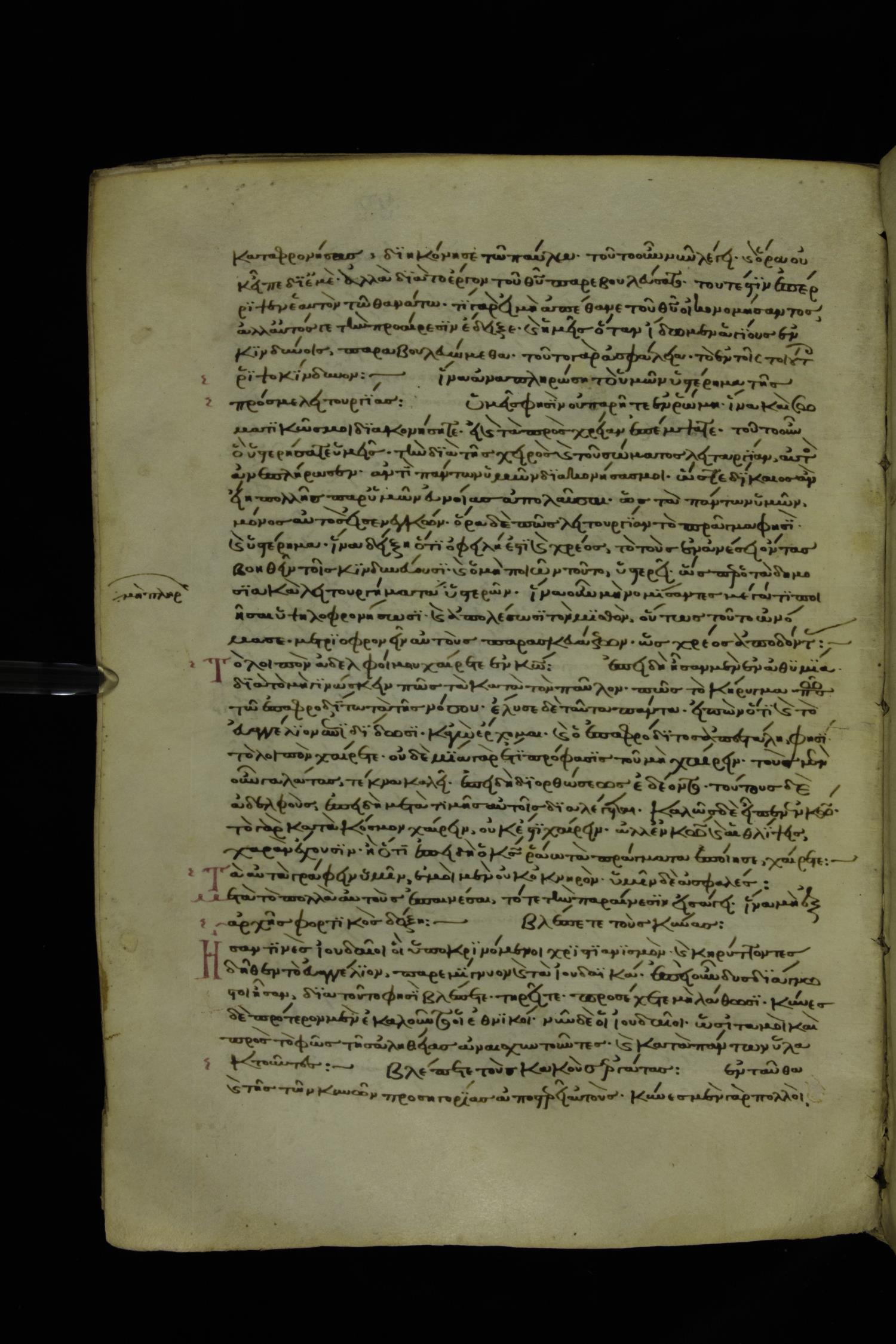 Thirteenth century minuscule of Paul with commentary on parchment; 367 leaves, 1 column, 34-41 lines per column. Images were taken at the National Library of Greece in Athens.