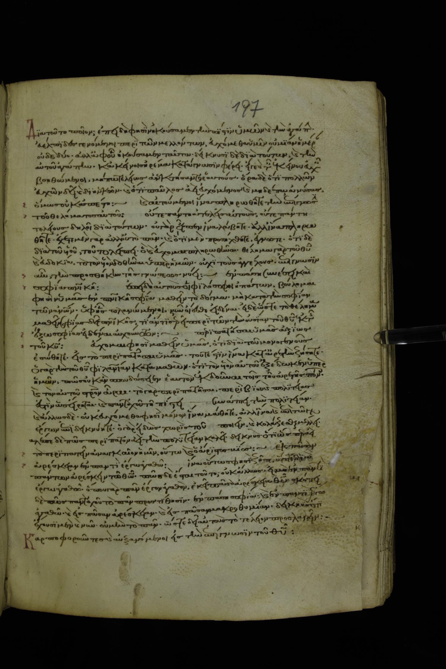 Thirteenth century minuscule of Paul with commentary on parchment; 367 leaves, 1 column, 34-41 lines per column. Images were taken at the National Library of Greece in Athens.