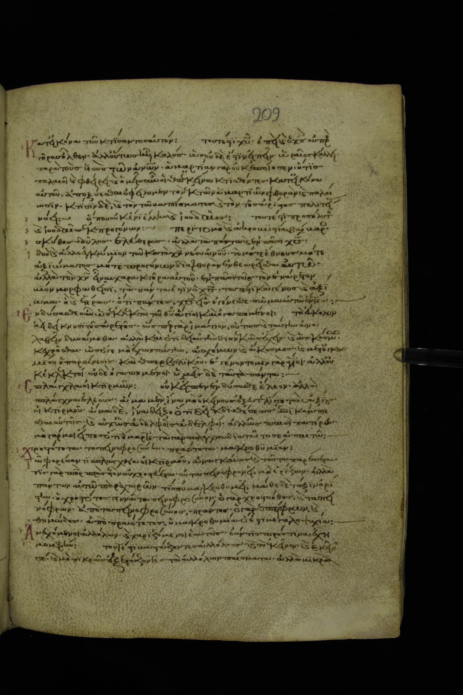 Thirteenth century minuscule of Paul with commentary on parchment; 367 leaves, 1 column, 34-41 lines per column. Images were taken at the National Library of Greece in Athens.