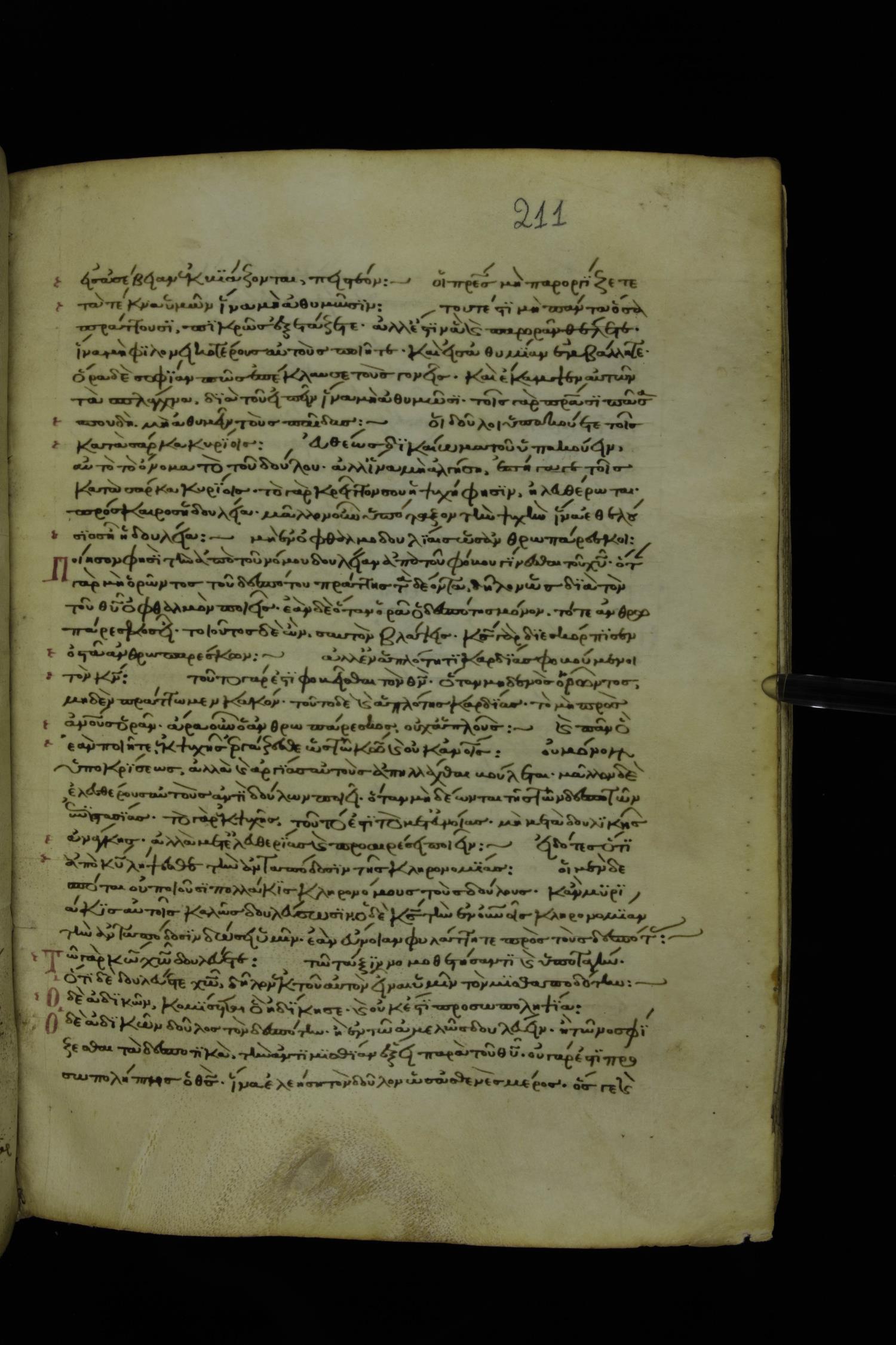 Thirteenth century minuscule of Paul with commentary on parchment; 367 leaves, 1 column, 34-41 lines per column. Images were taken at the National Library of Greece in Athens.