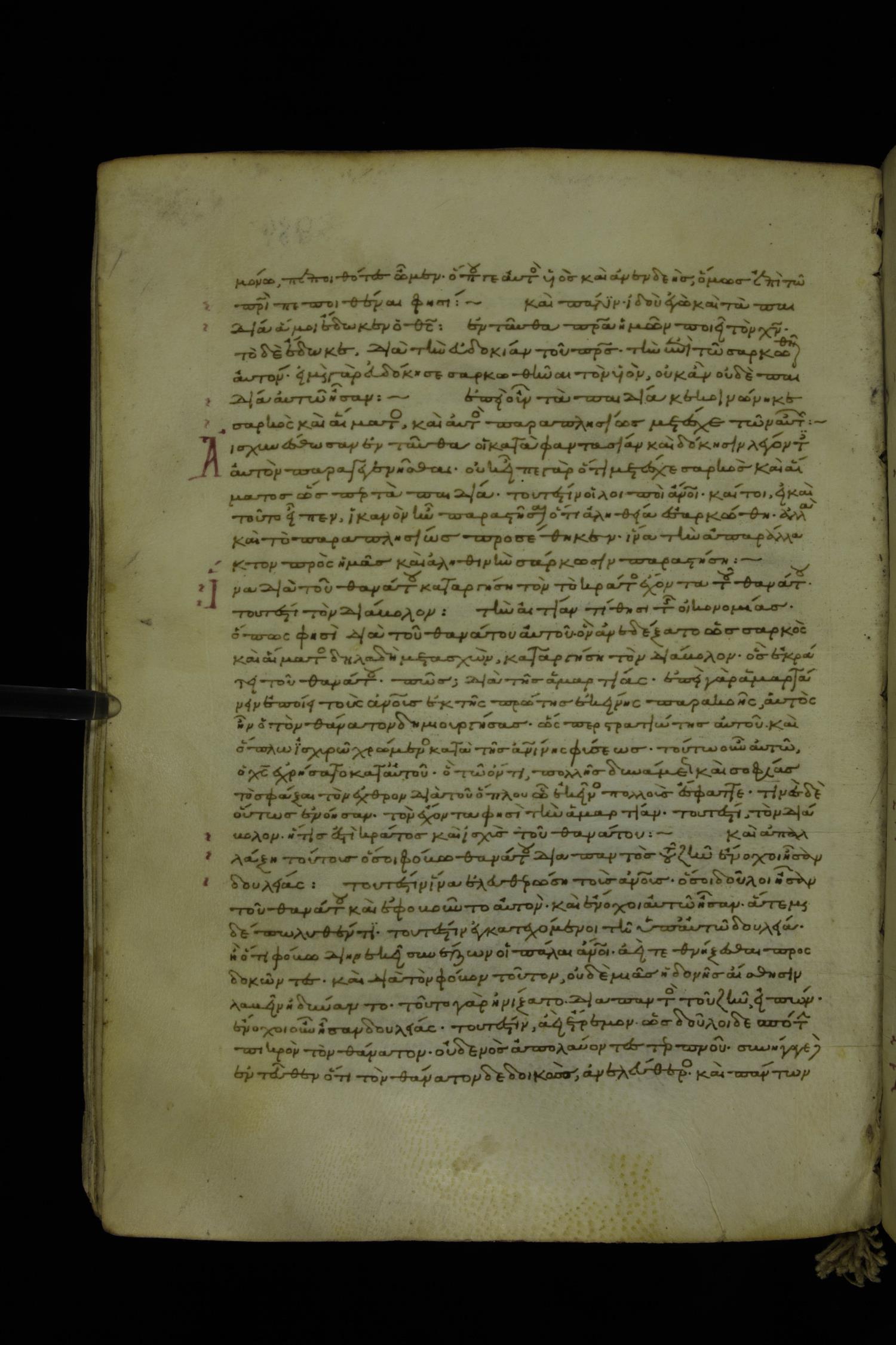 Thirteenth century minuscule of Paul with commentary on parchment; 367 leaves, 1 column, 34-41 lines per column. Images were taken at the National Library of Greece in Athens.