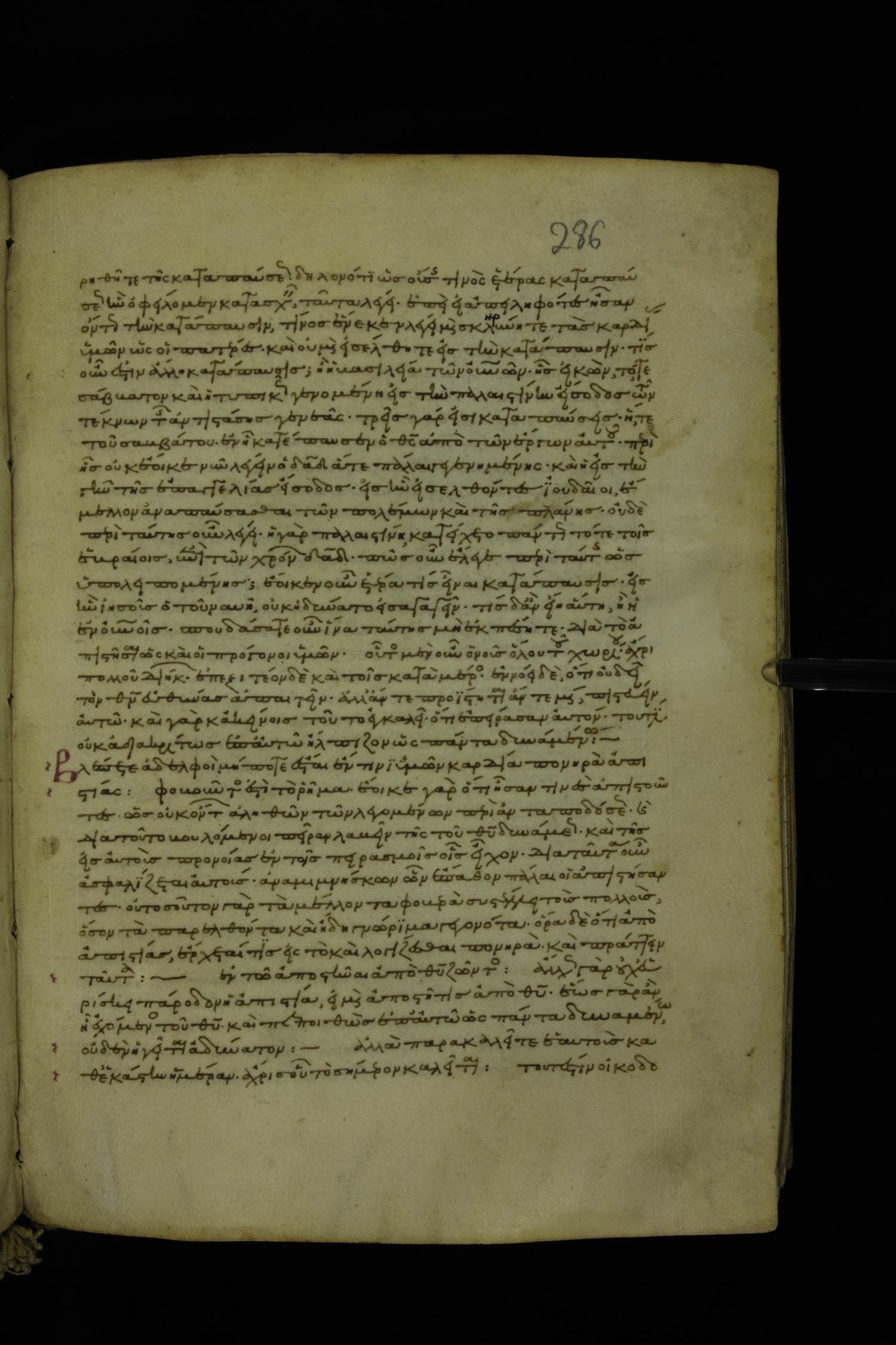 Thirteenth century minuscule of Paul with commentary on parchment; 367 leaves, 1 column, 34-41 lines per column. Images were taken at the National Library of Greece in Athens.