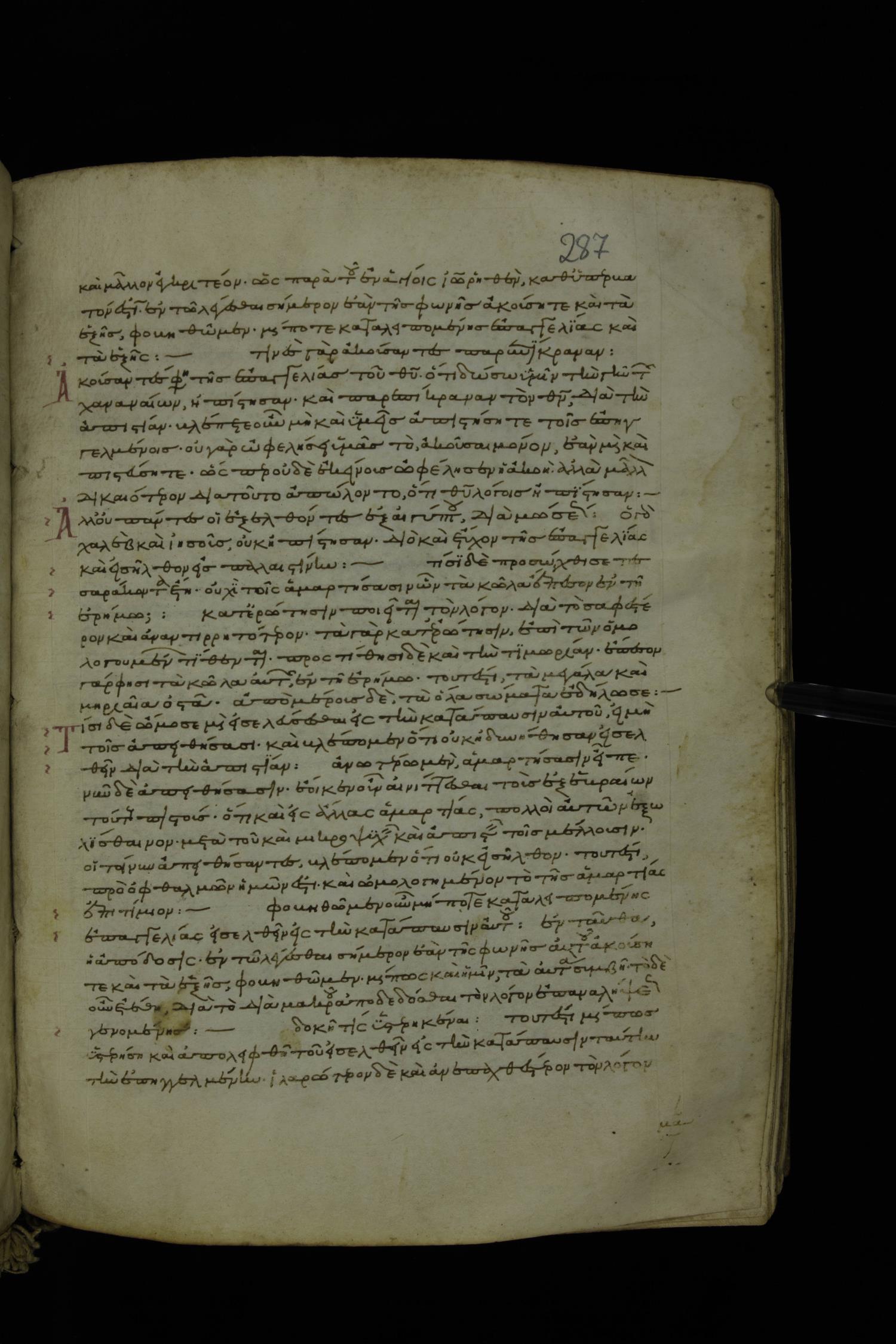 Thirteenth century minuscule of Paul with commentary on parchment; 367 leaves, 1 column, 34-41 lines per column. Images were taken at the National Library of Greece in Athens.
