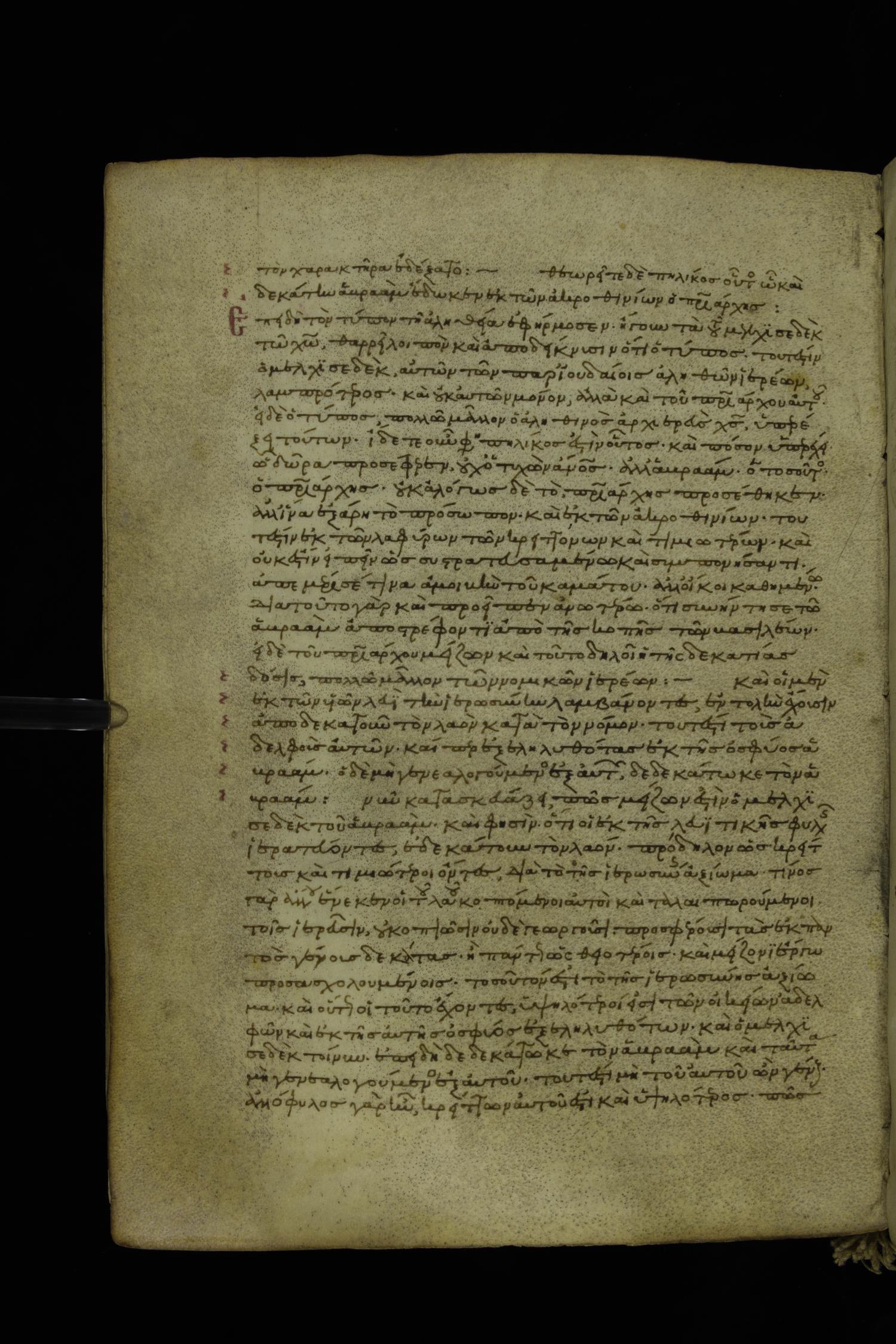 καὶ οἱ μὲν ἐκ τῶν υἱῶν Λευεὶ / Λευὶ τὴν ἱερατίαν / ἱερατείαν λαμβάνοντες ἐντολὴν ἔχουσιν ἀποδεκατοῖν / ἀποδεκατοῦν τὸν λαὸν κατὰ τὸν νόμον, τοῦτ´ ἔστιν τοὺς ἀδελφοὺς αὐτῶν, καίπερ ἐξεληλυθότας ἐκ τῆς ὀσφύος Ἀβραάμ·