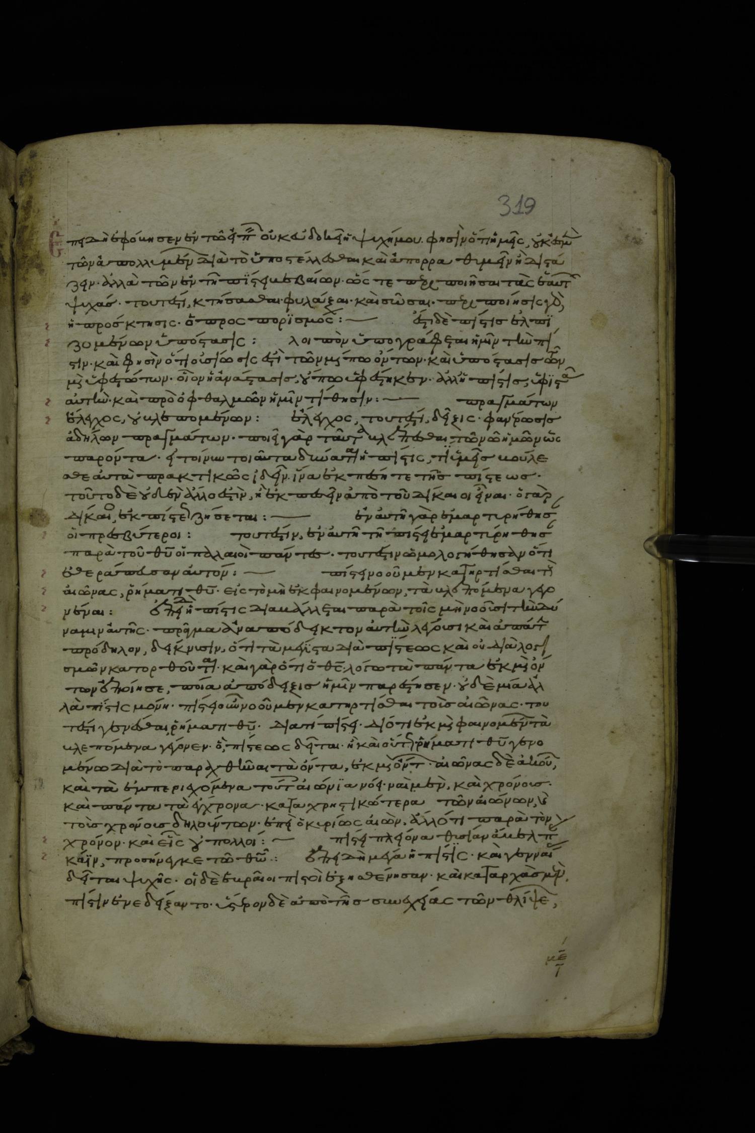 Thirteenth century minuscule of Paul with commentary on parchment; 367 leaves, 1 column, 34-41 lines per column. Images were taken at the National Library of Greece in Athens.
