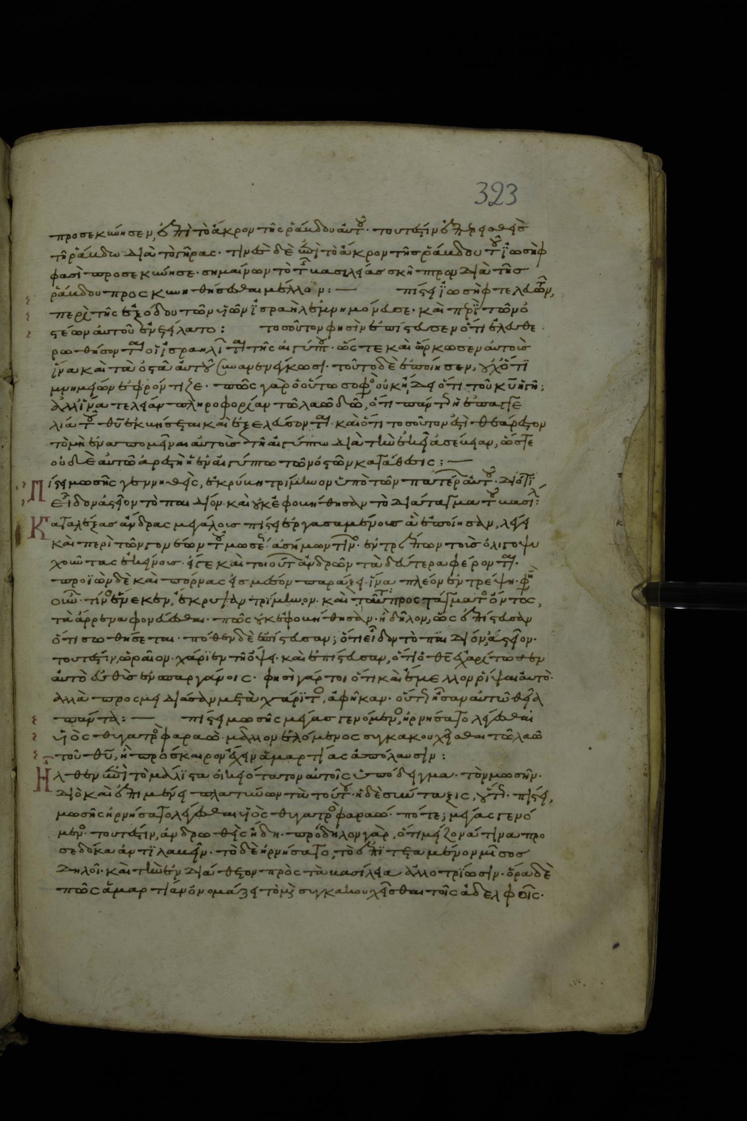 Thirteenth century minuscule of Paul with commentary on parchment; 367 leaves, 1 column, 34-41 lines per column. Images were taken at the National Library of Greece in Athens.