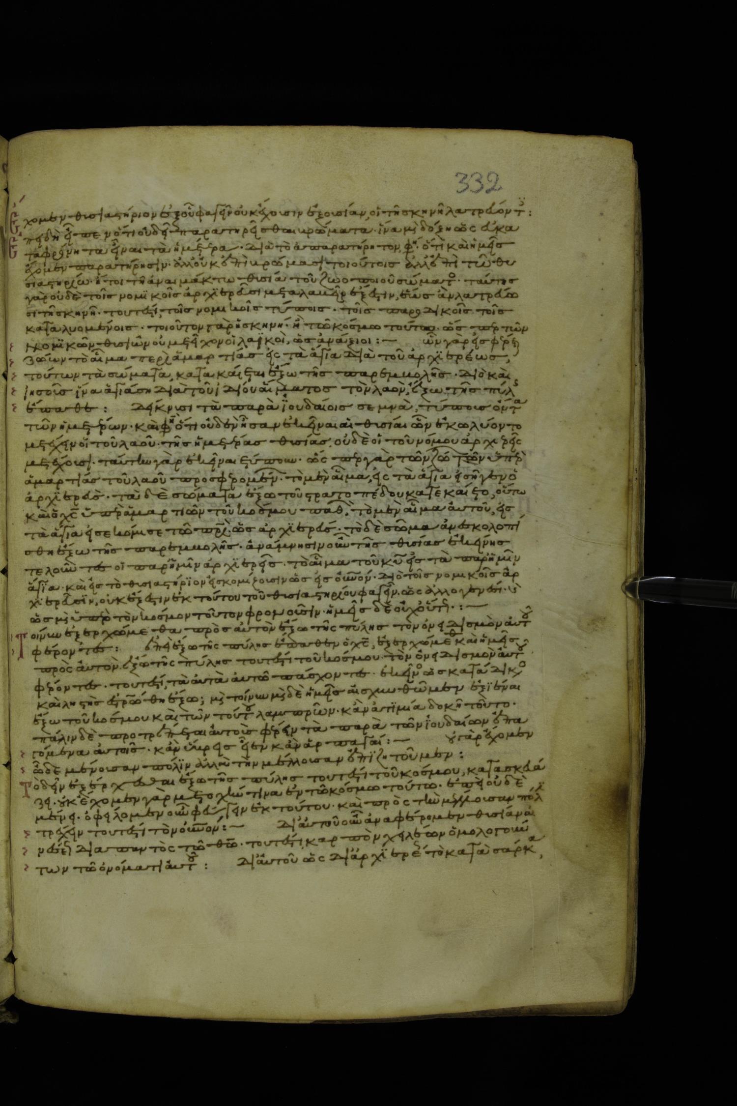 Thirteenth century minuscule of Paul with commentary on parchment; 367 leaves, 1 column, 34-41 lines per column. Images were taken at the National Library of Greece in Athens.