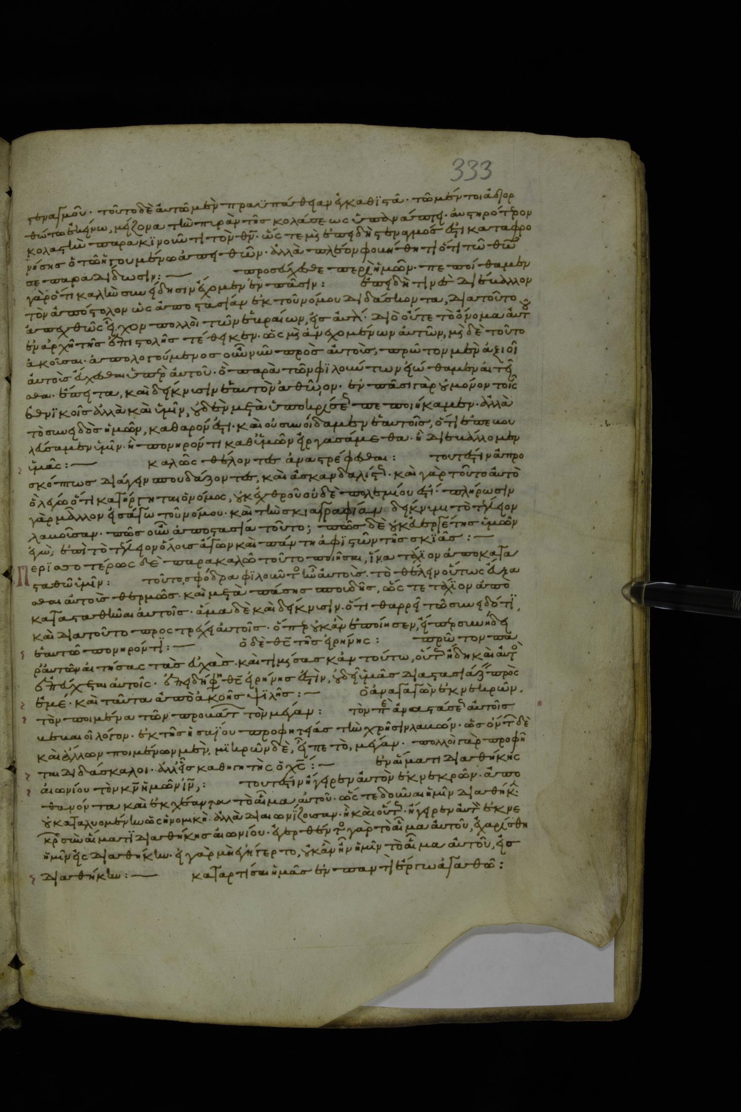 Thirteenth century minuscule of Paul with commentary on parchment; 367 leaves, 1 column, 34-41 lines per column. Images were taken at the National Library of Greece in Athens.