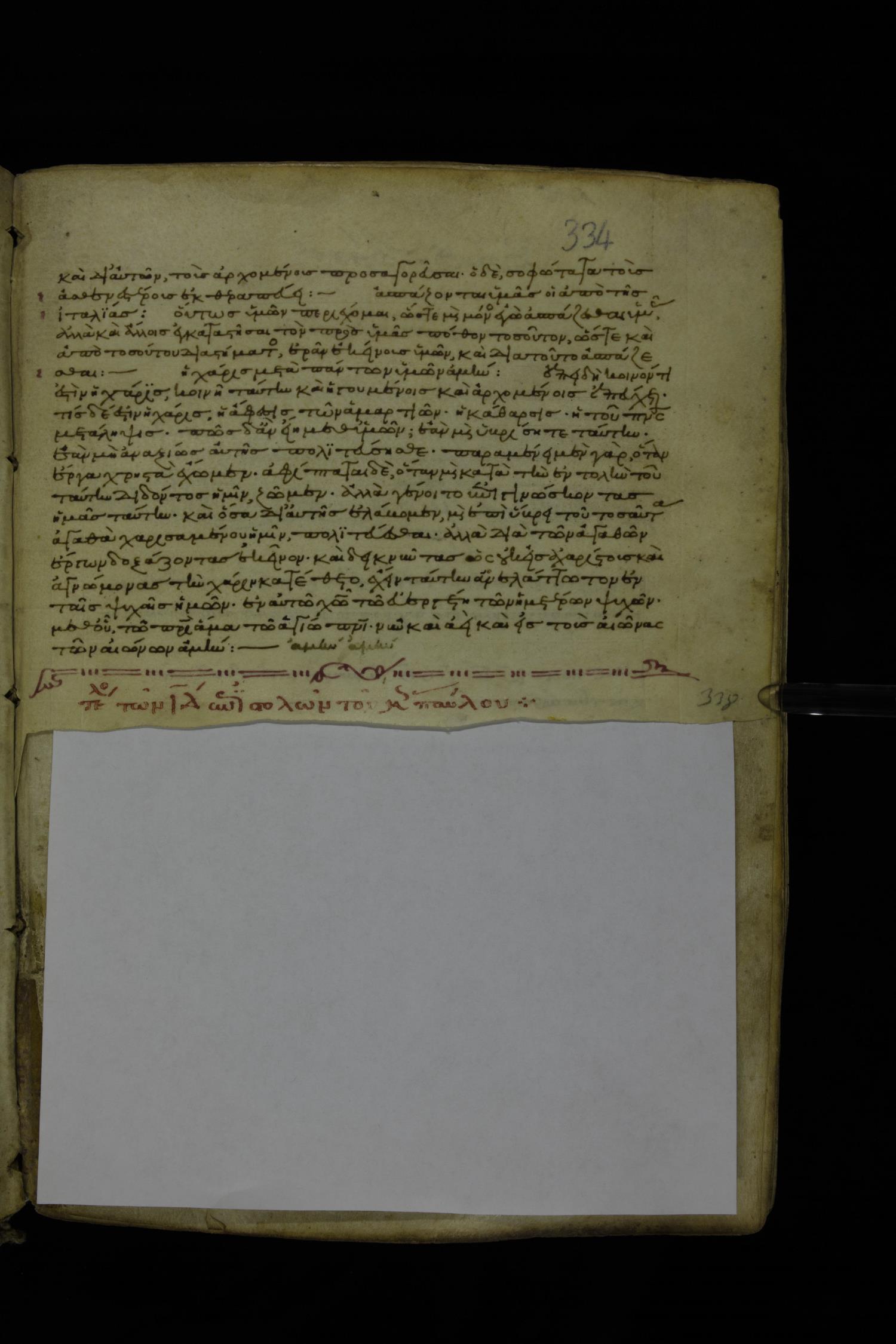 Thirteenth century minuscule of Paul with commentary on parchment; 367 leaves, 1 column, 34-41 lines per column. Images were taken at the National Library of Greece in Athens.
